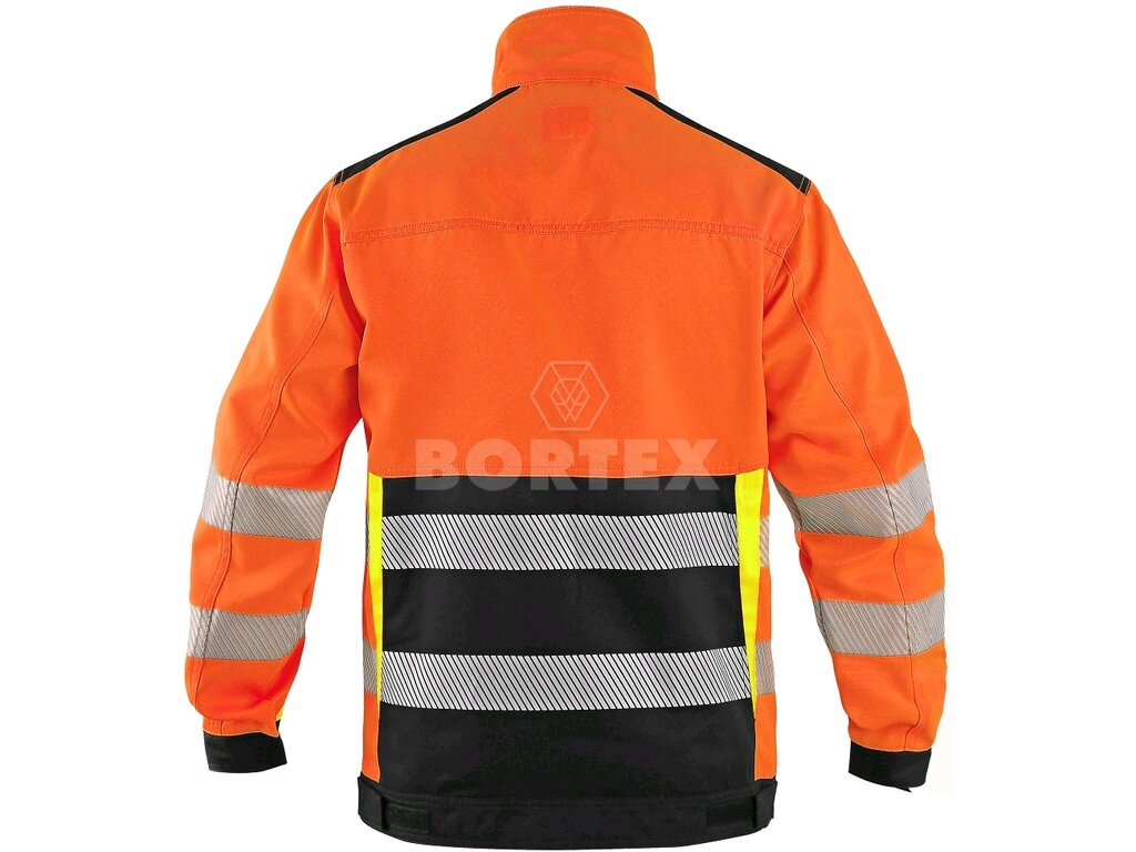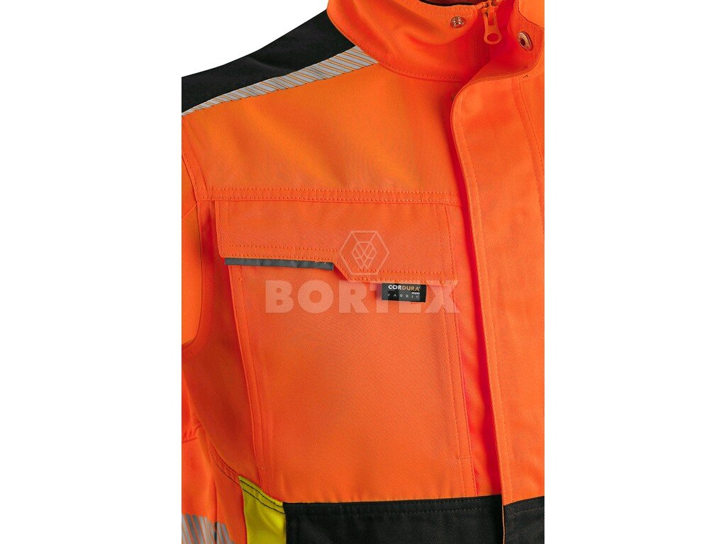 Moderná pánska pracovná blúza výstražnej farby s reflexnými doplnkami. Ramená bundy sú zosílené materiálom CORDURA, ktorý je pevný a odoláva predratiu. Rukávy majú nastaviteľnú manžetu na suchý zips. Zapínanie na zips je kryté suchými zipsami a cvokmi. Má veľké množstvo praktických vreciek - ľavé náprsné na zips, pravé kryté klopou, vrecko na perá na ľavom rukáve a dve bočné vrecká na zips. Pre väčšiu bezpečnosť pri práci je bunda vybavená segmentovnými reflexnými pásikmi so šírkou 5cm a kontrastnými oranžovými a reflexnými doplnkami.