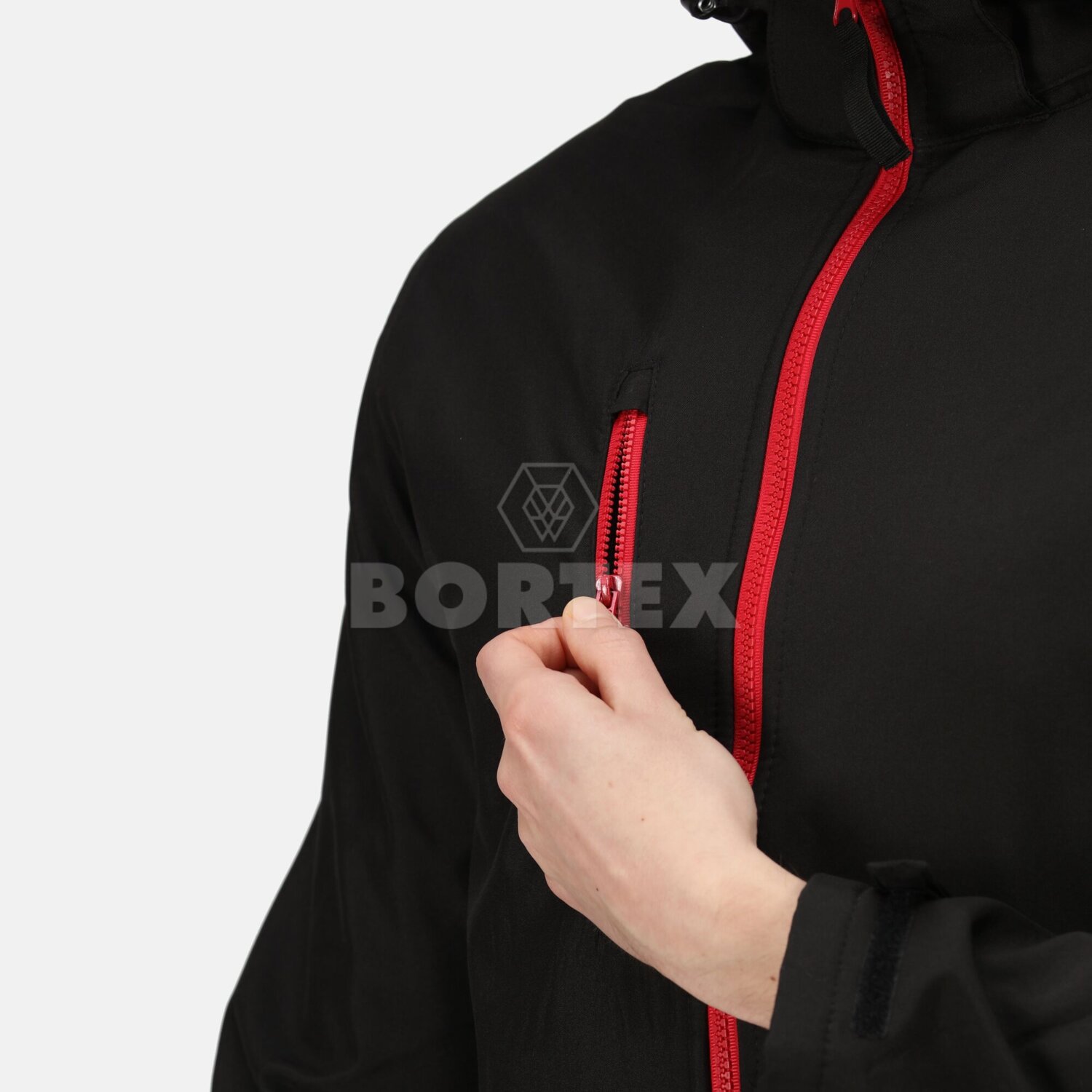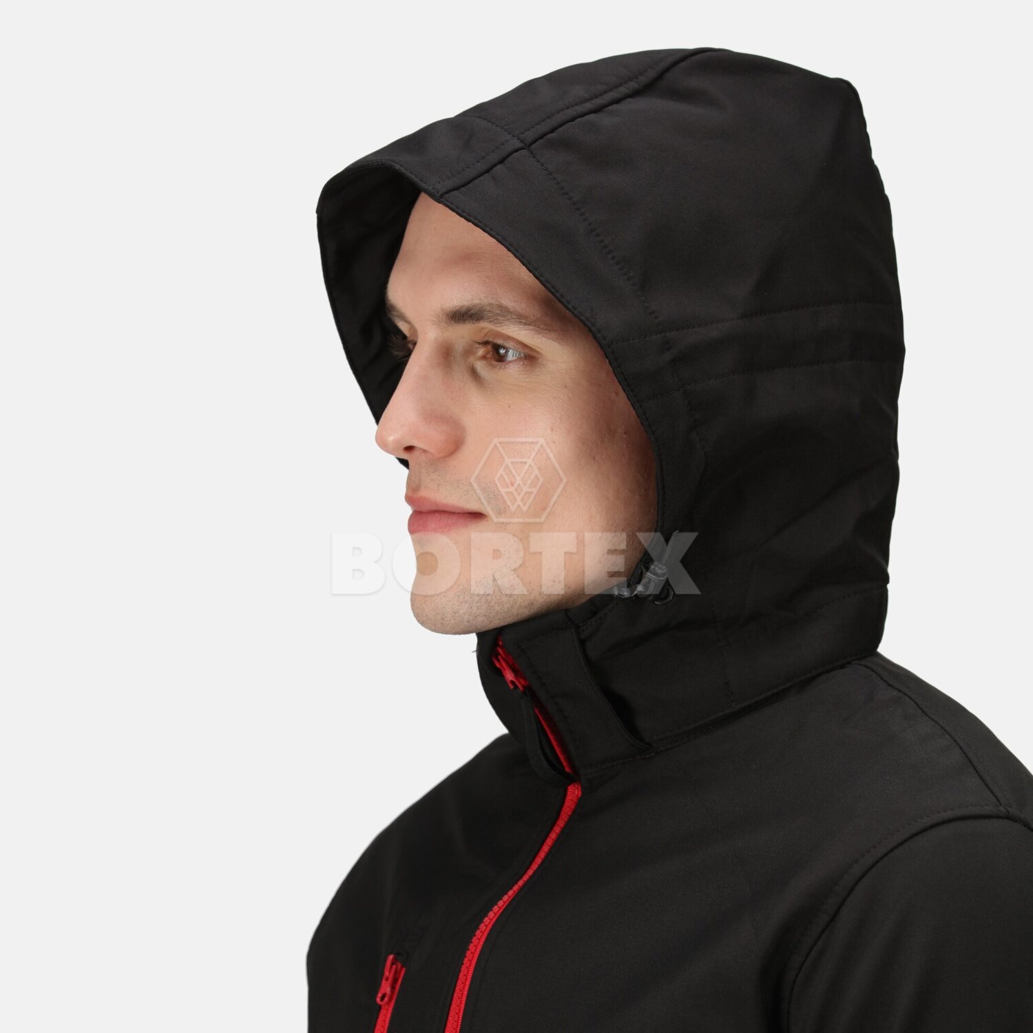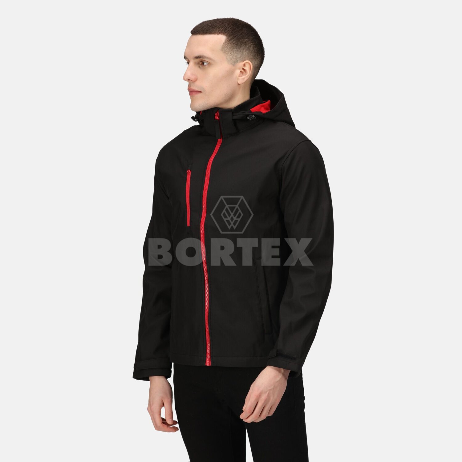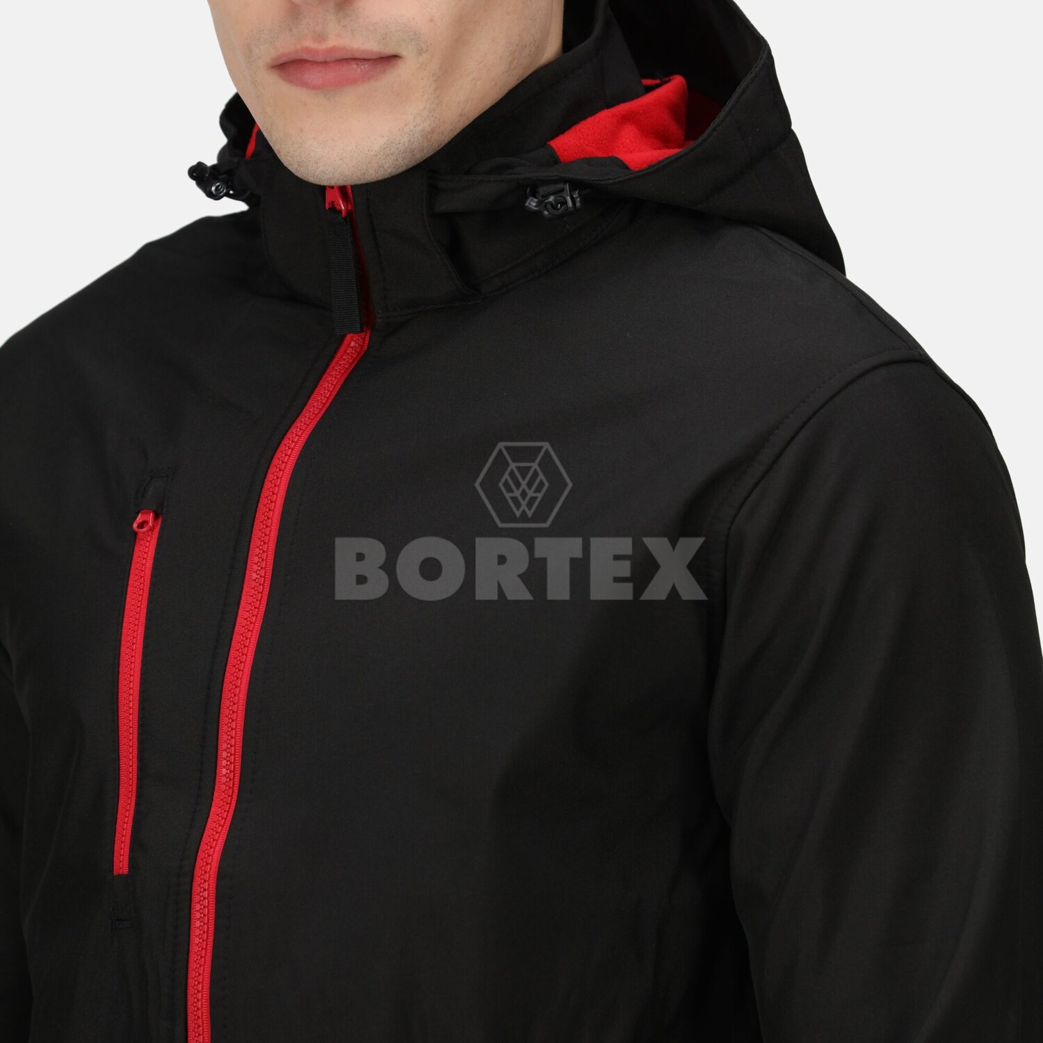 Pánska softshellová bunda s kapucňou Venturer 3-Layer - čierna + červená