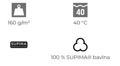 Značka SUPIMA predstavuje 1% svetovej produkcie tej nejexluzívnejšej prémiovej bavlny. Tá sa vyznačuje unikátne dlhými vláknami, ktoré sú dvakrát silnejšie oproti bežnej bavlne. Zamedzujú tak svojmu vyťahaniu, lámaniu a trhaniu. Vďaka tomu sú tričká neuveriteľne jemné, odolné, držia si svoju podobu a nežmolkujú sa.