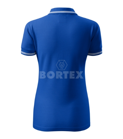 Dámska pique polokošeľa vyššej gramáže 200 g/m2. Golier a manžety rukávov z rebrového úpletu sú obzvláštnené dvojitým kontrastným prúžkom. Vnútorná časť zadného priekrčníka je začistená páskou vo farbe materiálu. Polokošeľa má spevnené ramenné švy, predĺženú úzku légu s piatimi gombíkmi a priliehavý strih.
