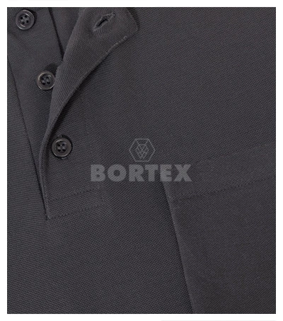 Strih je klasický s rozparkami v bočných švoch. Ramenné švy sú spevnené páskou, aby polokošeľa vždy dobre držala tvar. Vnútorný výstrih je zaistený páskou z vrchného materiálu. Golier a lemy rukávov sú vyrobené z pružného rebrovaného úpletu. Lem polokošele má 3 gombíky vo farbe materiálu.