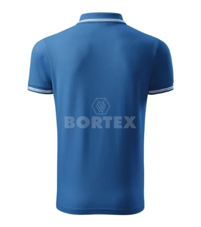 Pánska Pique polokošeľa vyššej gramáže 200 g/m2. Golier a manžety na rukávoch z rebrového úpletu sú obzvláštnené dvojitým kontrastným prúžkom. Vnútorná časť zadného priekrčníka je začistená páskou vo farbe materiálu. Polokošeľa má spevnené ramenné švy a légu s tromi gombíkami.
