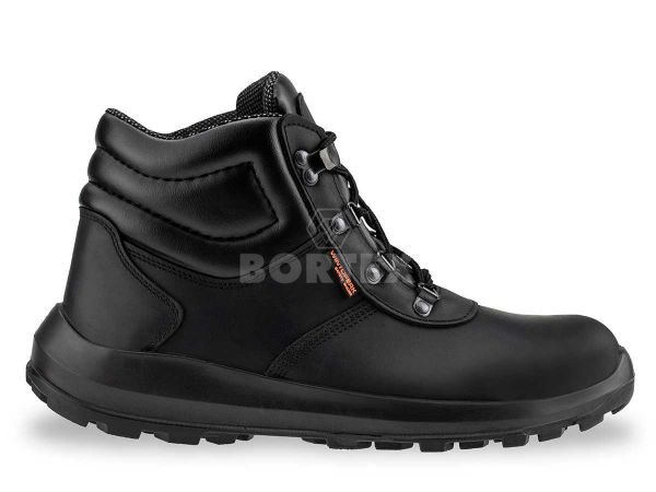 Vysoká pracovná obuv čiernej farby na šnúrovanie, vhodná do pracovného prostredia, kde sa nevyžaduje bezpečnostná špička. Obuv s protišmykovými vlastnosťami SRC.