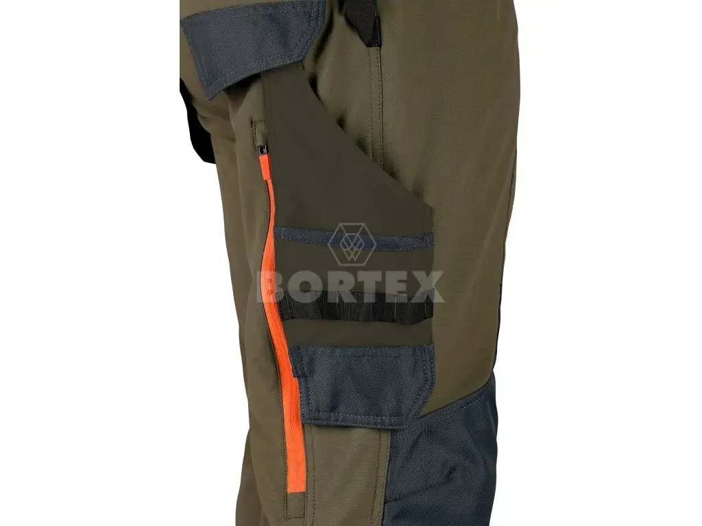 Pracovné nohavice CXS NAOS - khaki-olivová+HV oranžové doplnky