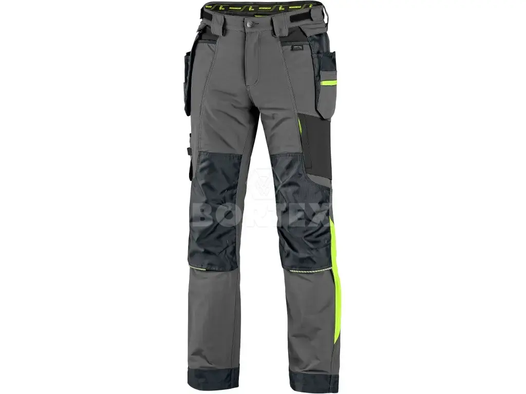 Pracovné nohavice CXS NAOS - sivo-čierne+HV žlté  doplnky