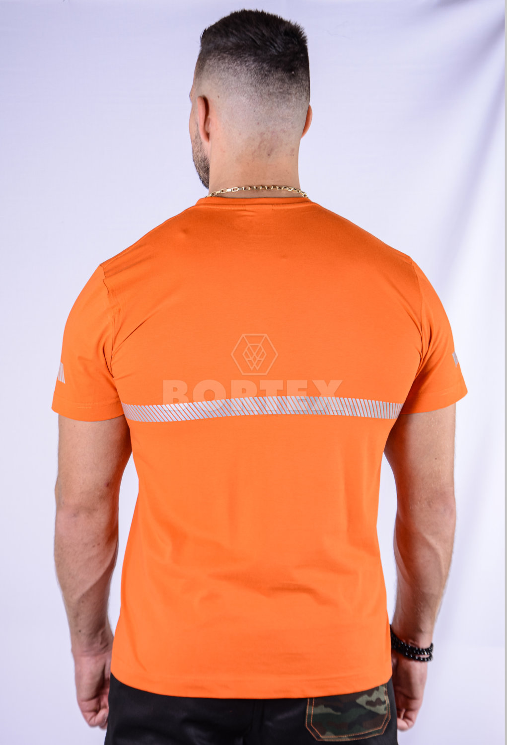 Tričko má segmentované, nažehlené reflexné pásy v šírke 2,5cm na rukávoch a hrudi.