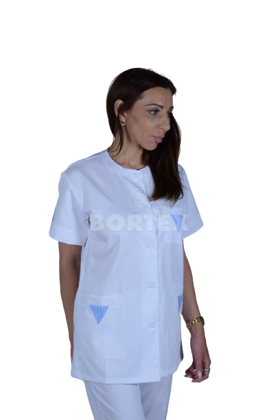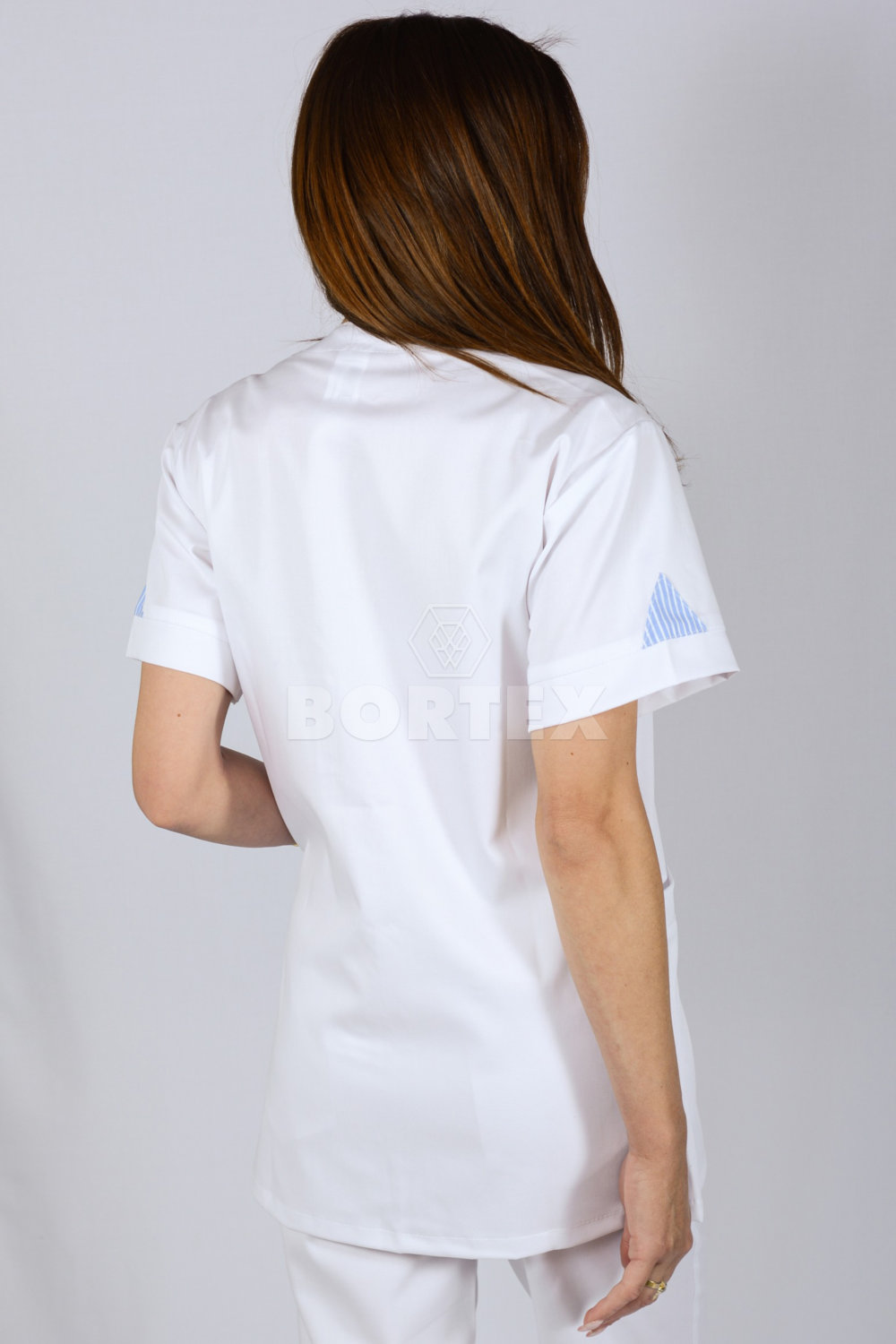 Rozhalenka s trouholníkom v modrej farbe je vyrobená z kvalitného, na dotyk príjemného materiálu - 100% bavlna. Bavlnený materiál je mäkký, pohodlný, pevný, savý a dá sa dobre udržiavať. Poskytuje dlhú životnosť odevu a výrobky z tohto materiálu sú určené na celodenné nosenie.