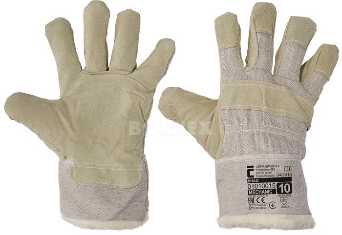 Zateplené kombinované mechanicky odolné pracovné rukavice. Vyrobené z jedného kusu bravčovej štiepenky v dlani s teplou podšívkou. Biela tkanina na chrbte a manžete. Rukavice poskytujú zvýšenú ochranu voči oderu a pretrhnutiu.