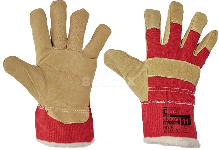 Zateplené kombinované mechanicky odolné pracovné rukavice. Vyrobené z jedného kusu bravčovej štiepenky v dlani s teplou podšívkou. Biela tkanina na chrbte a manžete. Rukavice poskytujú zvýšenú ochranu voči oderu a pretrhnutiu.