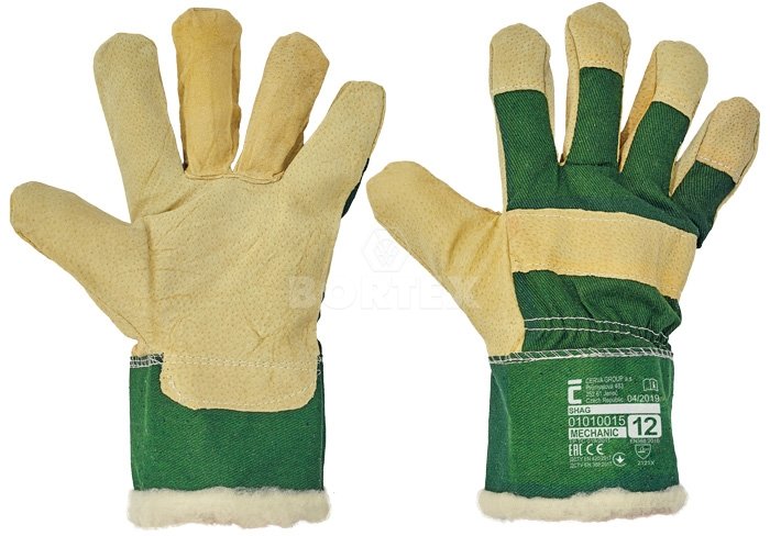 Zateplené kombinované mechanicky odolné pracovné rukavice. Vyrobené z jedného kusu bravčovej štiepenky v dlani s teplou podšívkou. Biela tkanina na chrbte a manžete. Rukavice poskytujú zvýšenú ochranu voči oderu a pretrhnutiu.