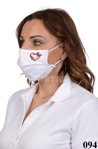 Antibakteriálne rúško s iónmi striebra B03- BORTEX, slovenský výrobok, dvojvrstvové-1.vrstva(100%bavlna), 2.vrstva (100%polyester s iónmi striebra)  s výšivkou - srdce (bordové) 094