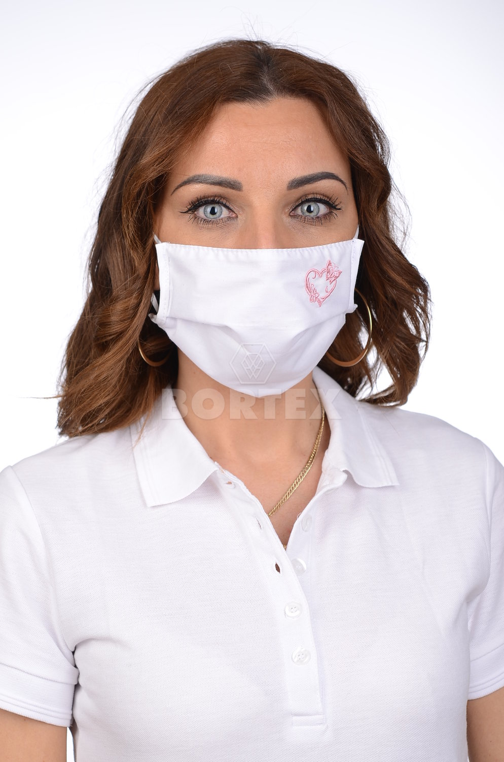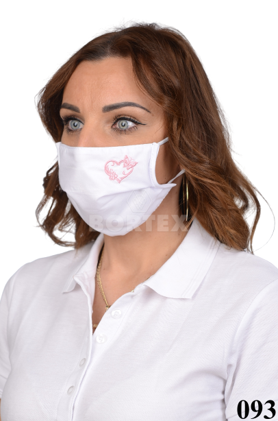 Rúško antibakteriálne na tvár biele -BORT,dvojvrstvové-1vrstva(100%bavlna), 1vrstva (100%polyester s iónmi striebra) s výšivkou - srdce (ružové)