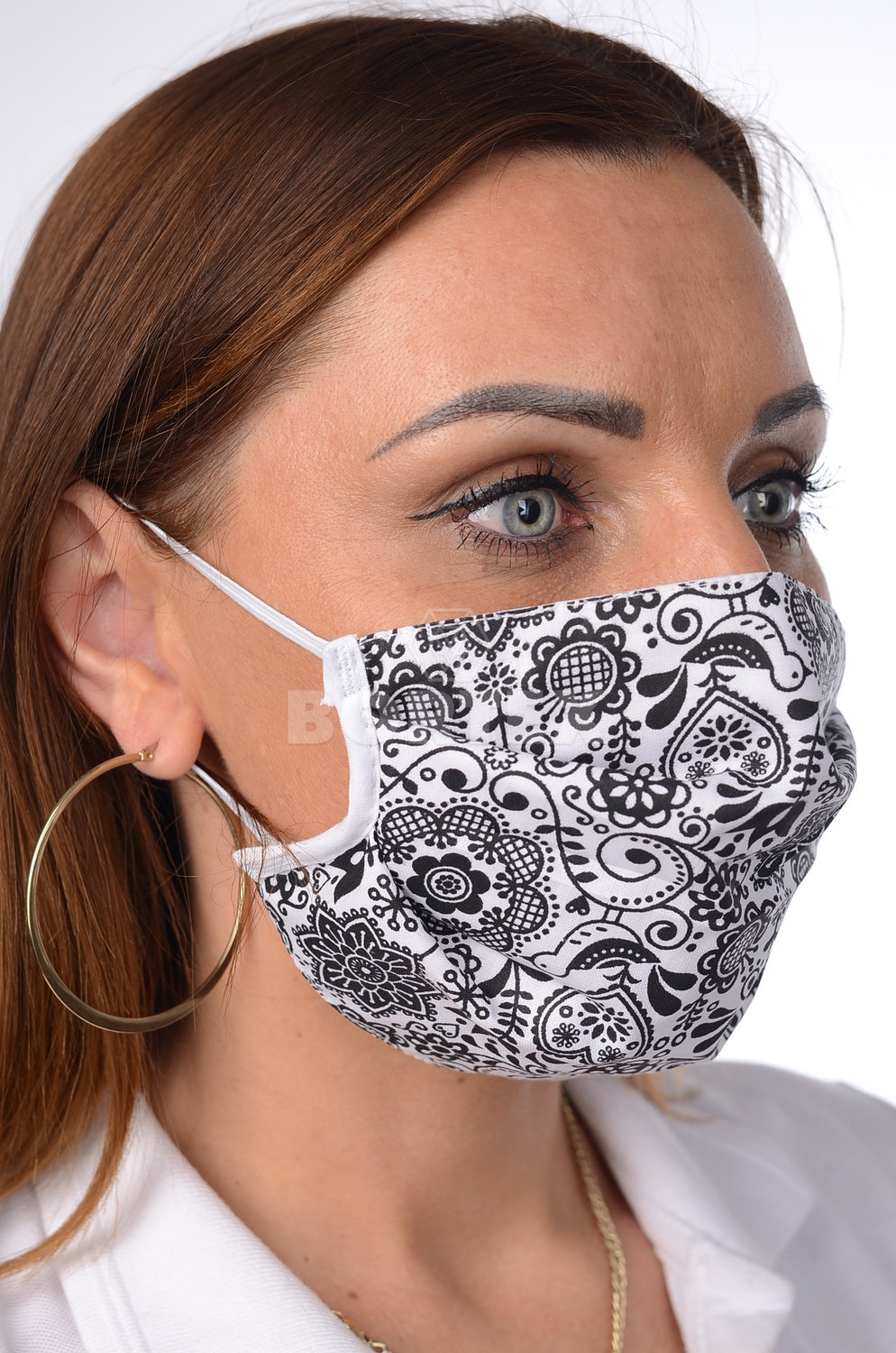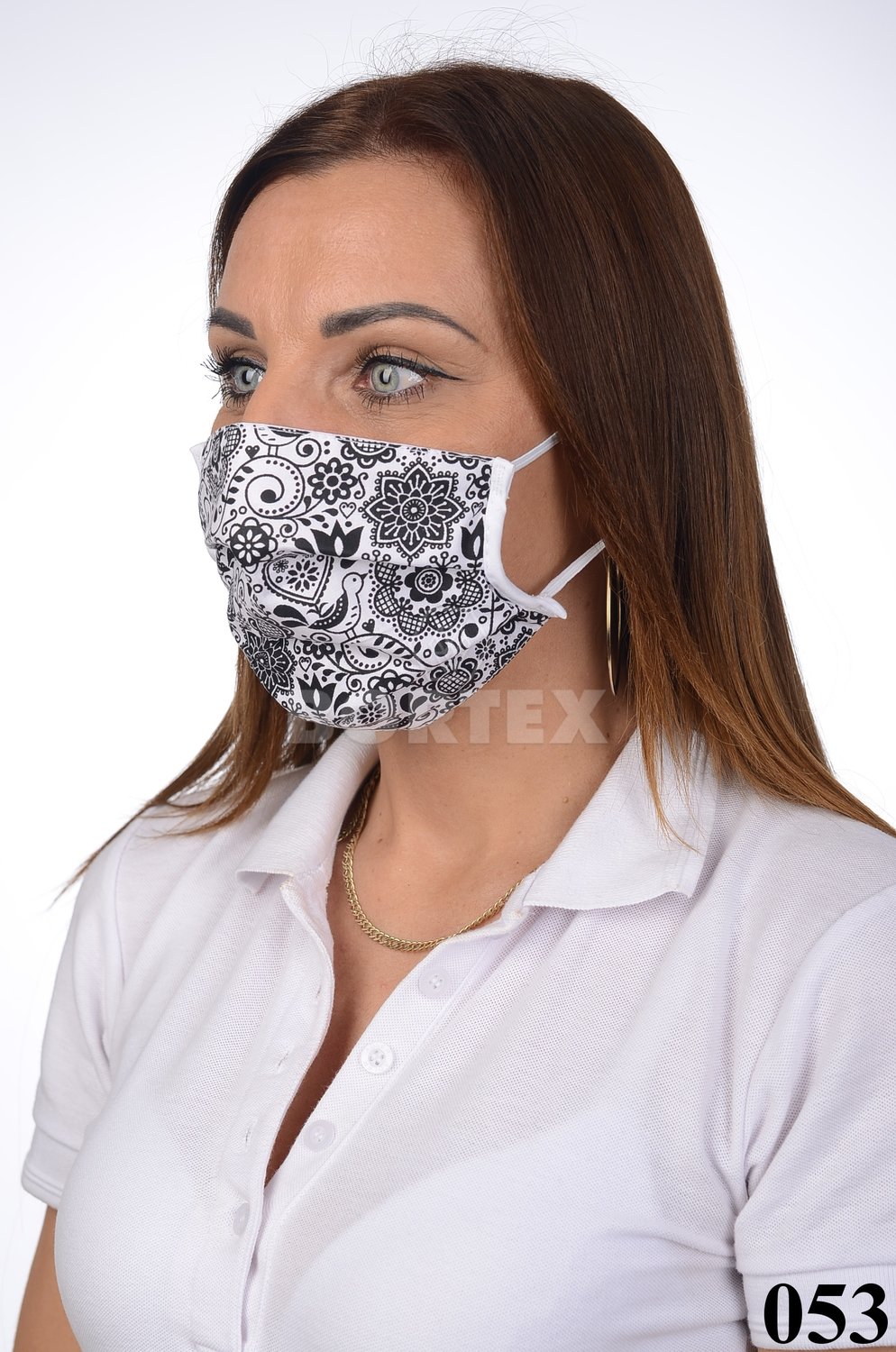 Rúško antibakteriálne na tvár-BORT, dvojvrstvové-1vrstva(100%bavlna), 1vrstva (100%polyester s iónmi striebra) ľudový motív (s bielym podkladom)