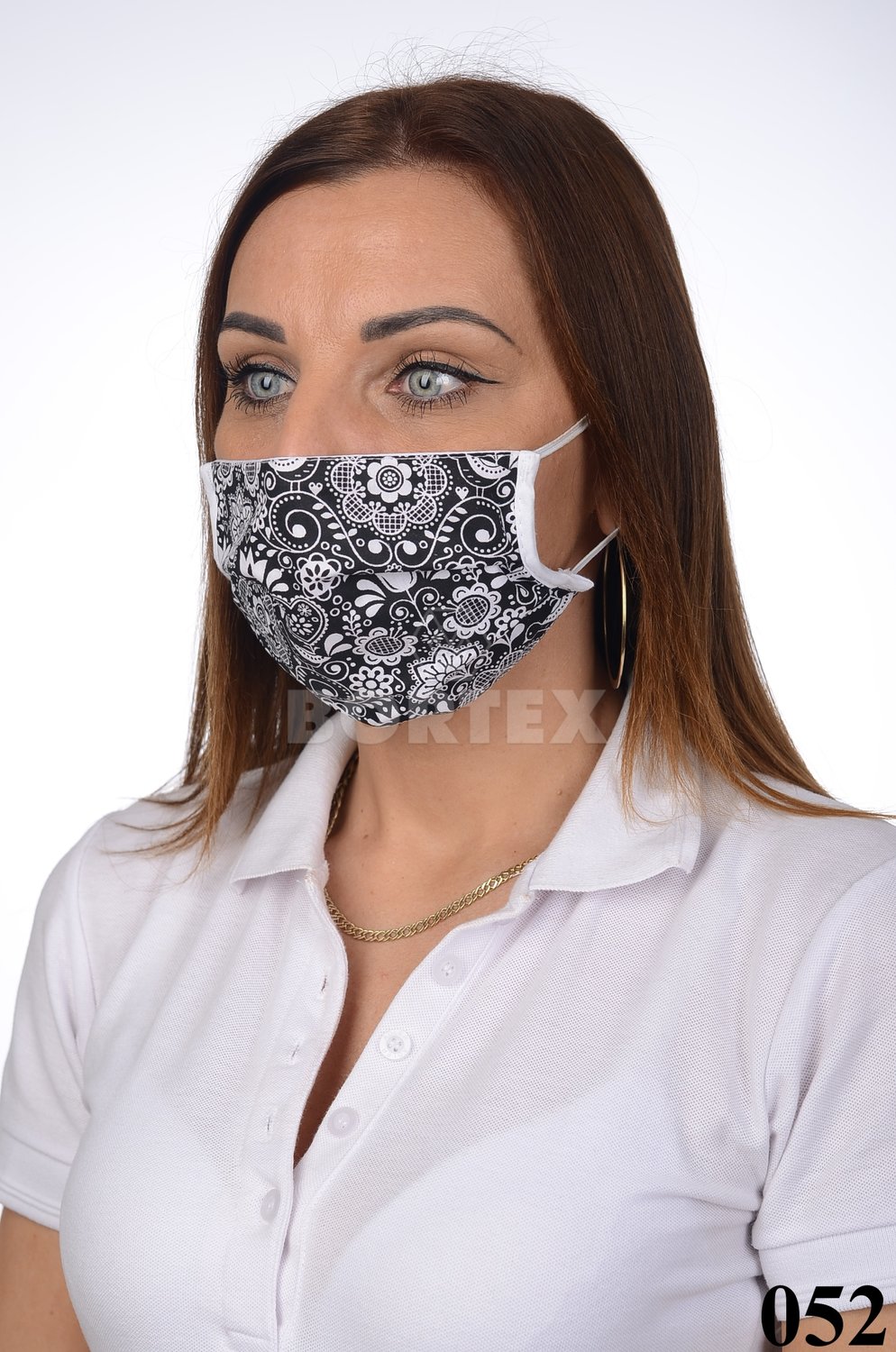 Rúško antibakteriálne na tvár-BORT, dvojvrstvové-1vrstva(100%bavlna), 1vrstva (100%polyester s iónmi striebra) ľudový motív (s čiernym podkladom)