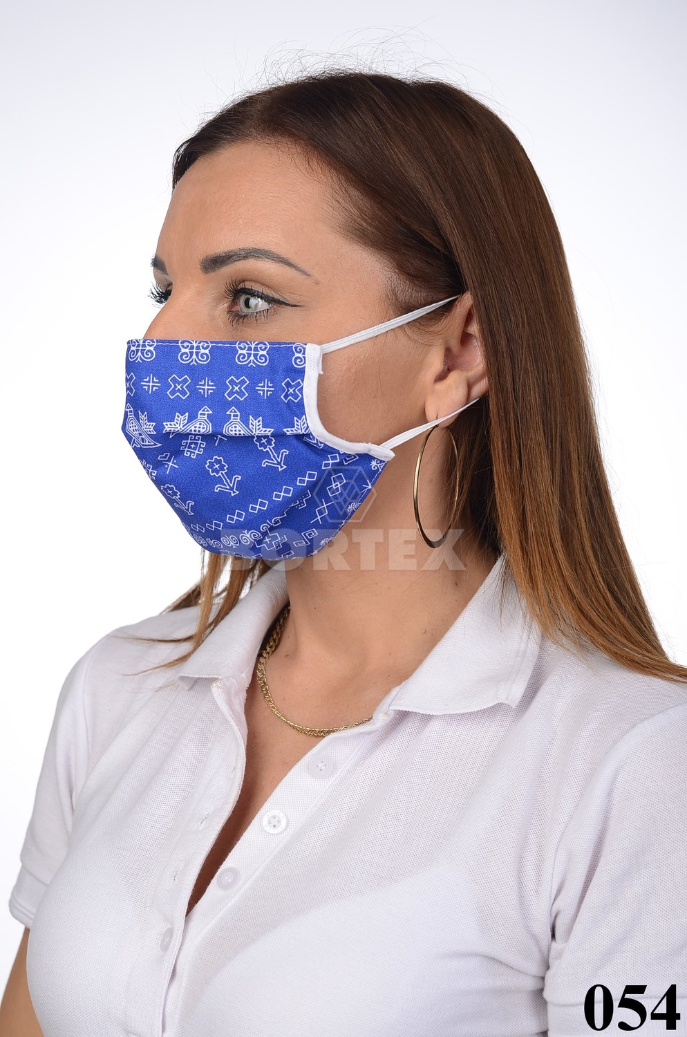Rúško antibakteriálne na tvár-BORT, dvojvrstvové-1vrstva(100%bavlna), 1vrstva (100%polyester s iónmi striebra) ľudový motív (so sv.modrým podkladom)