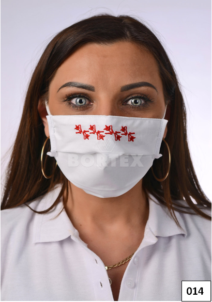 Rúško antibakteriálne na tvár-BORT,dvojvrstvové-1vrstva(100%bavlna), 1vrstva (100%polyester s iónmi striebra) s ozdobným ornamentom-výšivka (červené) 014 - VYROBENÉ NA SLOVENSKU