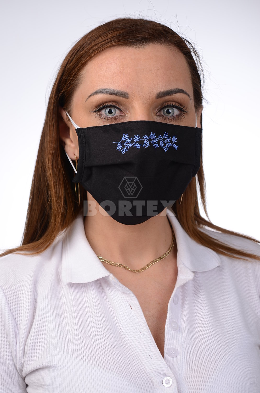 Rúško antibakteriálne na tvár,dvojvrstvové-1vrstva(100%bavlna), 1vrstva (100%polyester s iónmi striebra) s ozdobným ornamentom - výšivka (svetlo modré)
