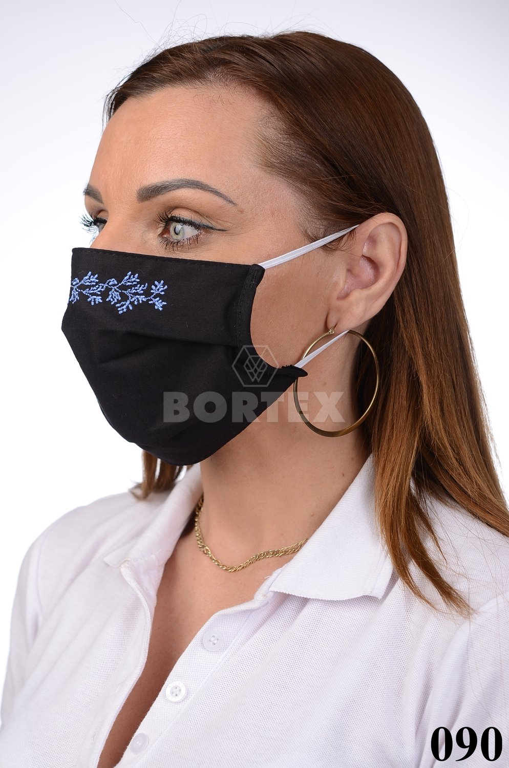Rúško antibakteriálne na tvár-BORT,dvojvrstvové-1vrstva(100%bavlna), 1vrstva (100%polyester s iónmi striebra) s ozdobným ornamentom - výšivka (svetlo modré) 090 - VYROBENÉ NA SLOVENSKU