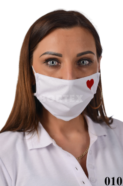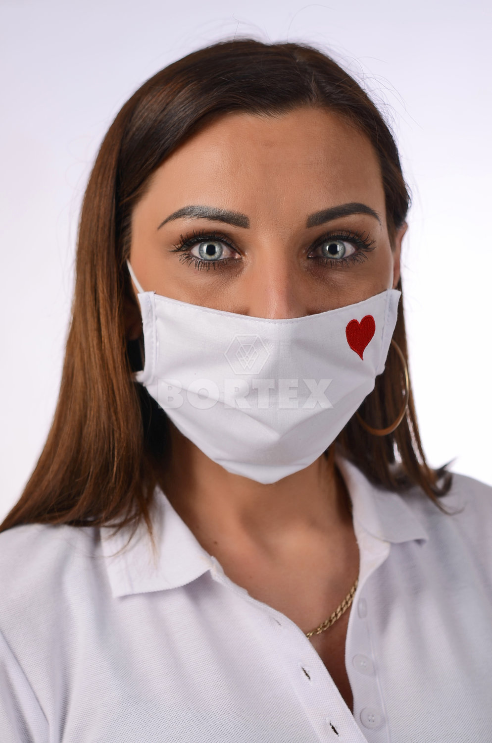 Rúško antibakteriálne na tvár-BORT,dvojvrstvové-1vrstva(100%bavlna), 1vrstva (100%polyester s iónmi striebra) so srdcom-výšivka 010 - VYROBENÉ NA SLOVENSKU