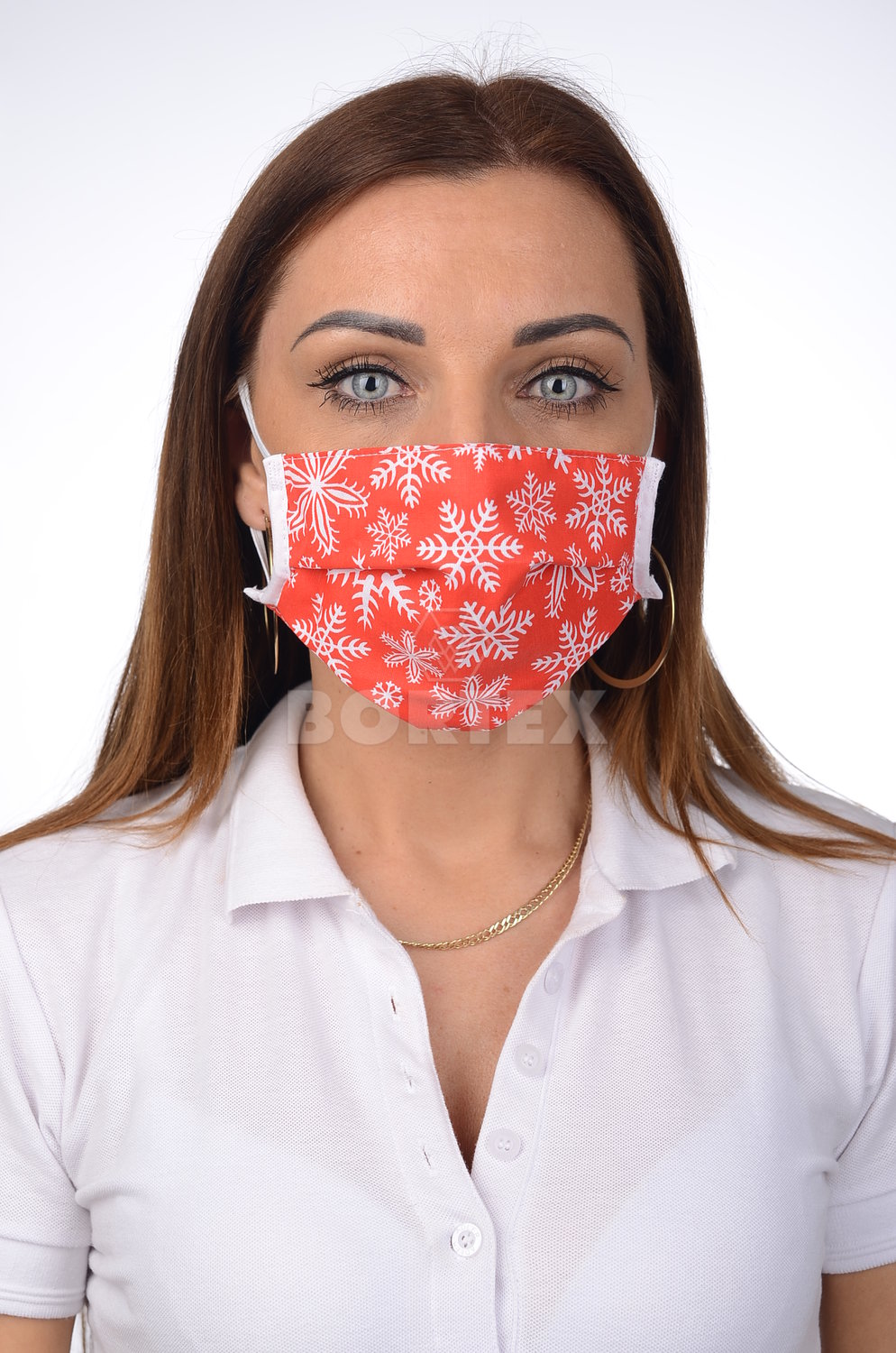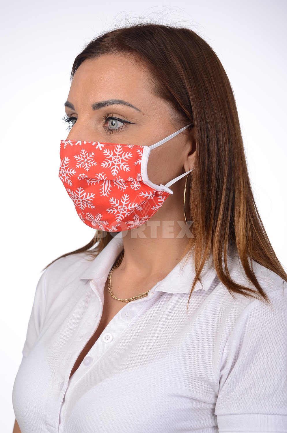 Rúško antibakteriálne na tvár-BORT, dvojvrstvové-1vrstva(100%bavlna), 1vrstva (100%polyester s iónmi striebra) vianočný motív (červené)