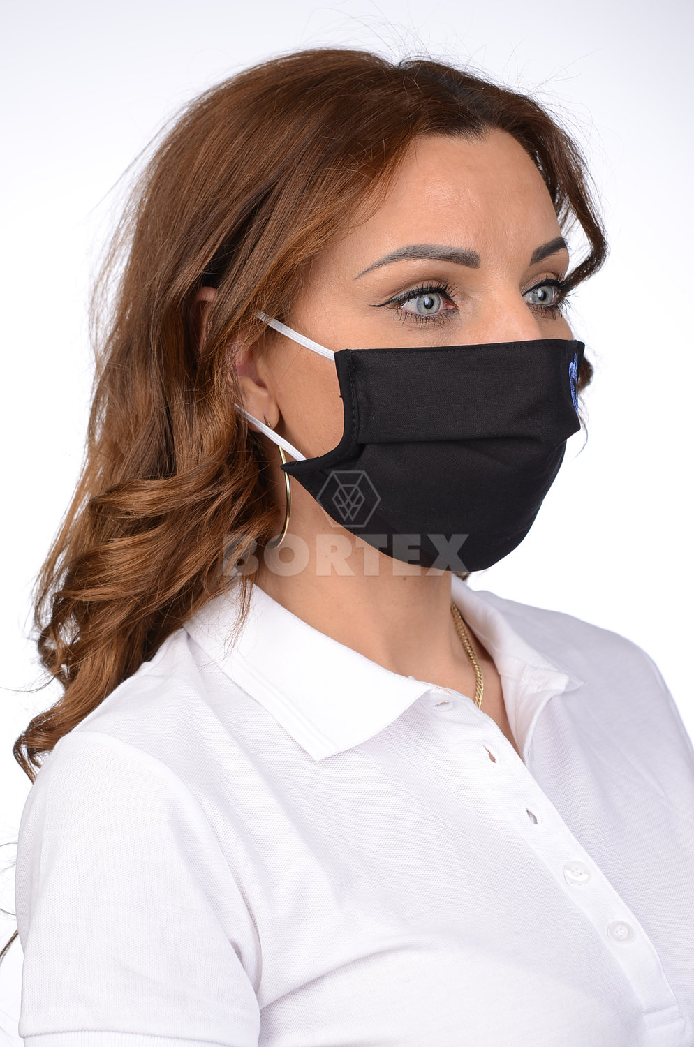Rúško antibakteriálne na tvár čierne -BORT,dvojvrstvové-1vrstva(100%bavlna), 1vrstva (100%polyester s iónmi striebra) s výšivkou - srdce (modré)