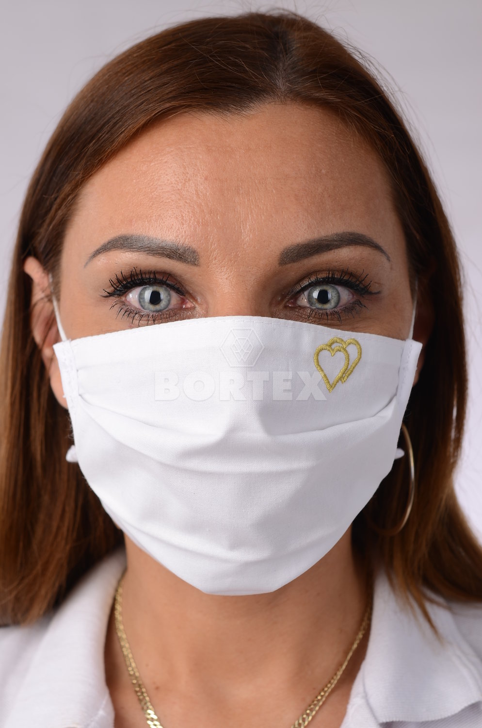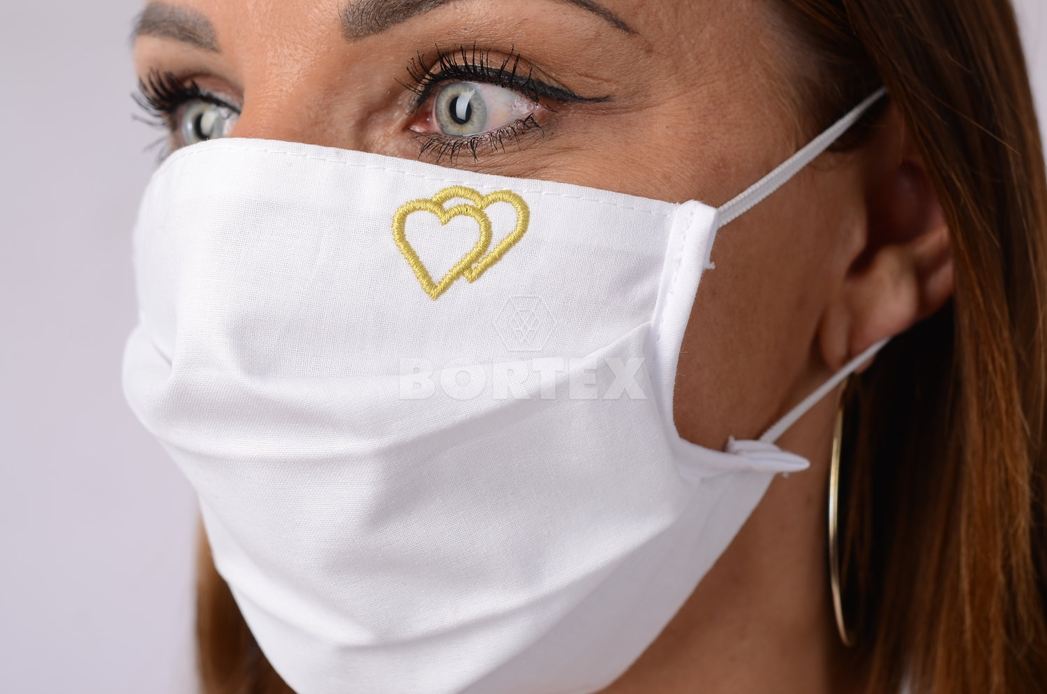 Rúško bavlnené na tvár B03 (dvojvrstvové-100% bavlna) s výšivkou svadobný motív (srdcia)