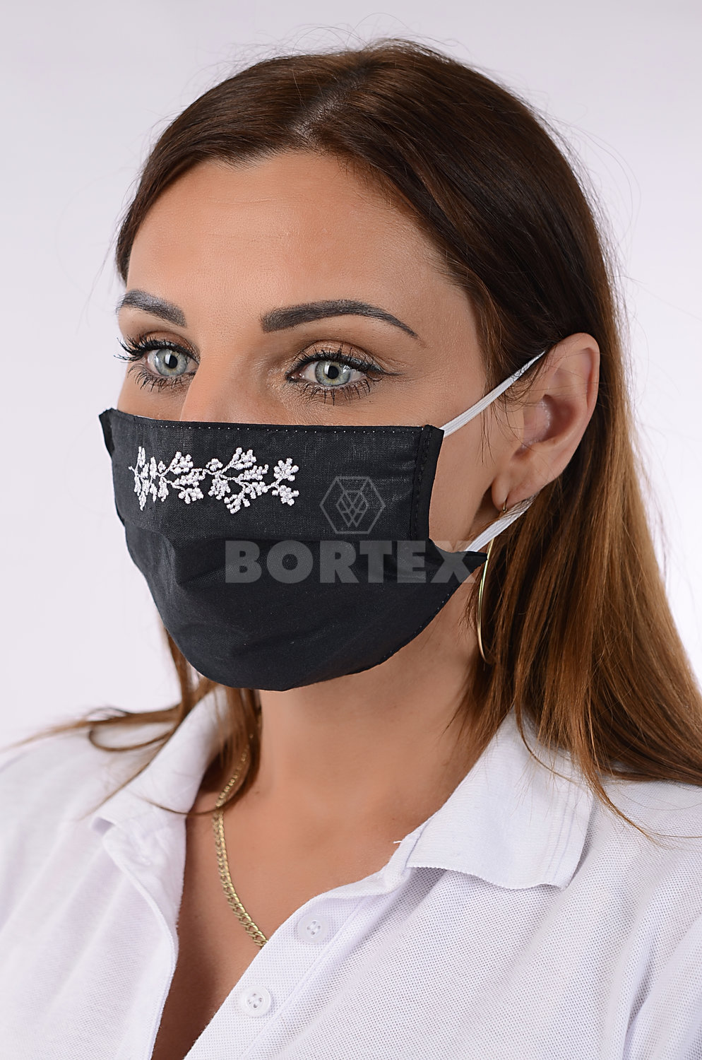 Rúško antibakteriálne na tvár,dvojvrstvové-(100%bavlna) s ozdobným ornamentom - výšivka