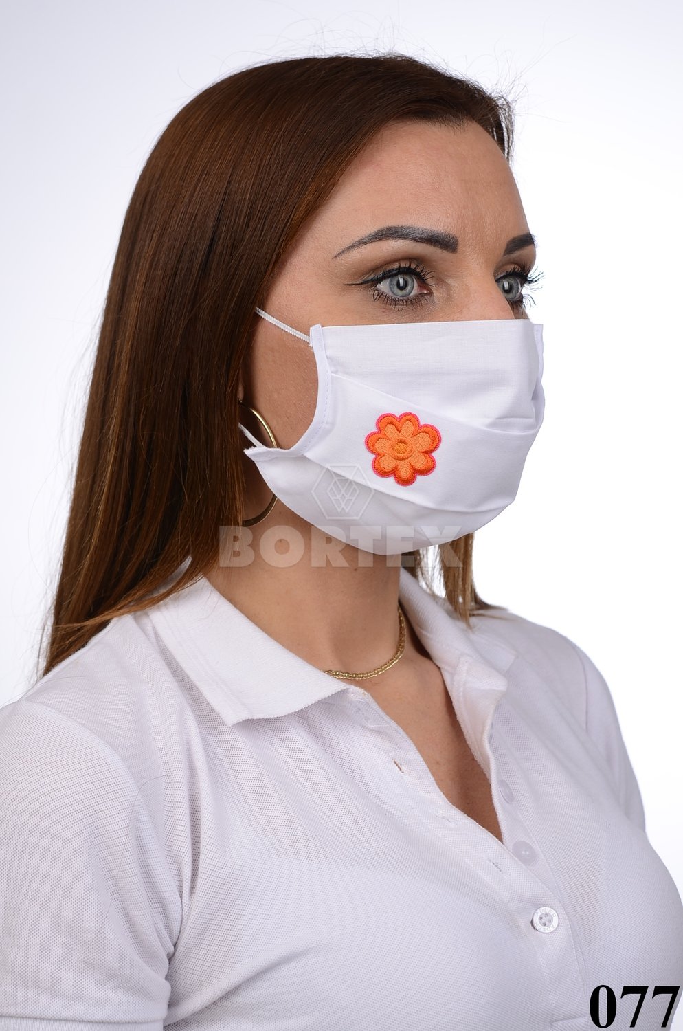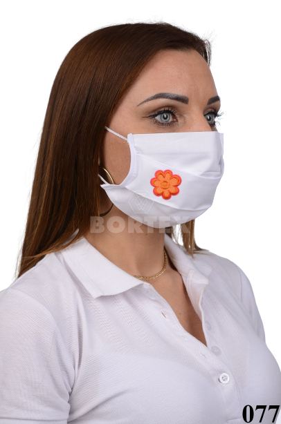 Rúško na tvár bavlnené B03-BORT.slovenský výrobok (dvojvrstvové-100% bavlna) - motív kvet (biele) 077