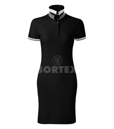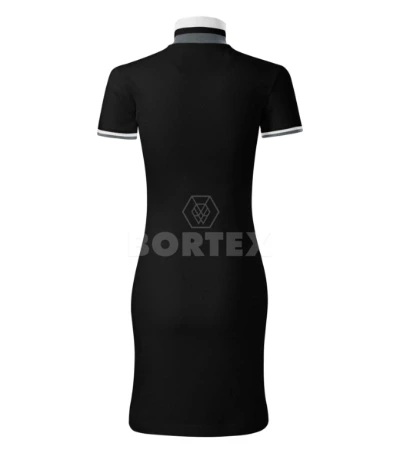 Dámske bavlnené šaty vhodné na každodenné nosenie. Krásny priliehavý strih s bočnými švami. Majú límec a lemy rukávov z rebrového úpletu. Vnútorná časť priekrčníka je začistená kontrastnou páskou. Spodný diel légy je doplnený o kontrastnú tkanú pásku. Rozparky v bočných švoch sú spevnené kontrastnou páskou. Gramáž 215 g/m2.