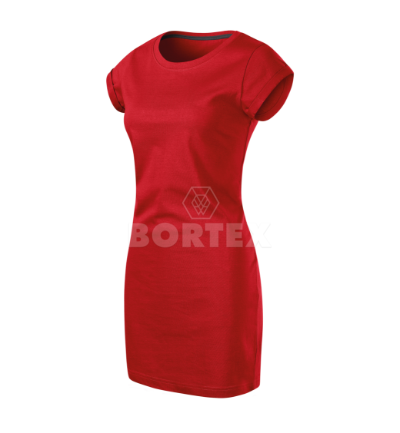 Šaty majú rovný a voľný strih, dĺžku po kolená. Rukávy sú módne vyhrnuté a upevnené šitím na 4 miestach. Výstrih je hlbší a okrúhlejší. Priekrčník má úzky lem s 5% podielom elastanu pre ľahšie obliekanie a jeho vnútorná strana je zakončená páskou v sivej farbe. Od ramena k ramenu vedie spevňujúca páska, aby si šaty udržali tvar aj po mnohých praniach.