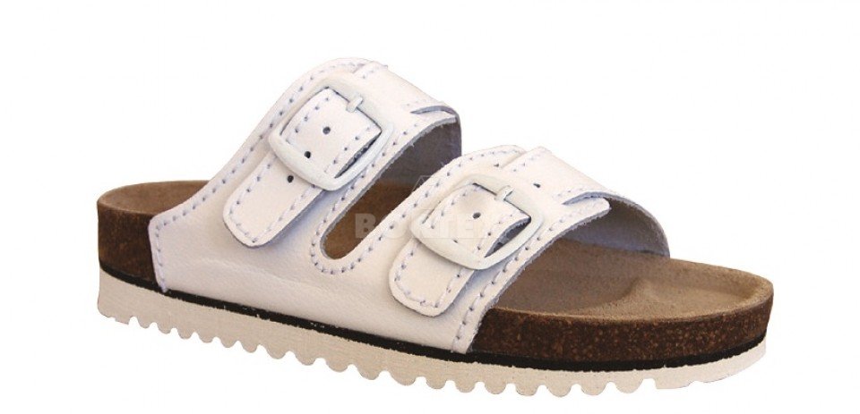 Ortopedicko-rehabilitačné sandále na výlisku z prírodného korku s anatomicky tvarovanou stielkou.