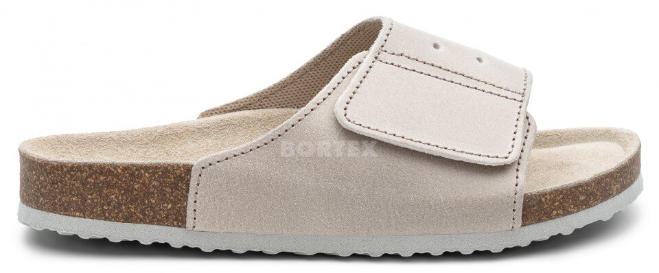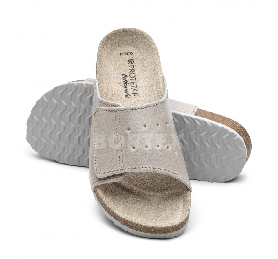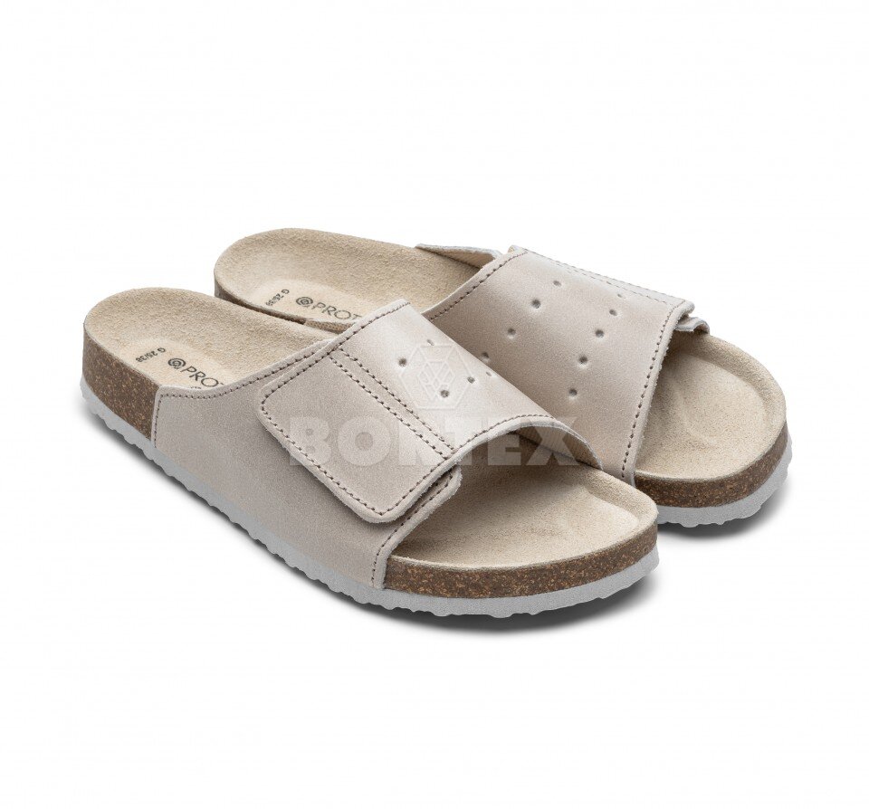 Ortopedicko-rehabilitačné šľapky na korklatexovom výlisku s anatomicky tvarovanou koženou stielkou.