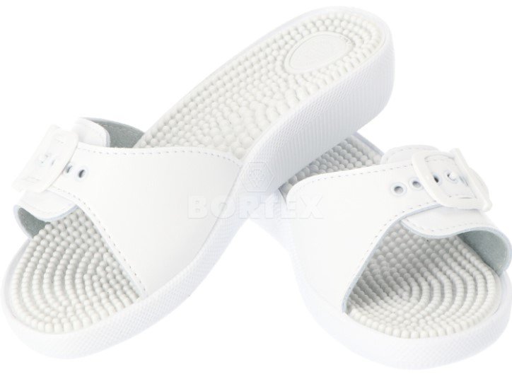 Komfortná obuv s anatomicky tvarovanou masážnou stielkou. Podpora pozdĺžnej klenby v kombinácií s masážnou stielkou zlepšuje tvarovanie pozdĺžnej klenby. Stielka veľmi dobre masíruje pri chôdzi chodidlá. Obuv je vhodná po celodennom chodení na premasírovanie chodidiel. Nedoporučuje sa na celodenné nosenie. Zvršok s nastaviteľným upínaním na jednu pracku je vyrobený zo syntetickej kože.