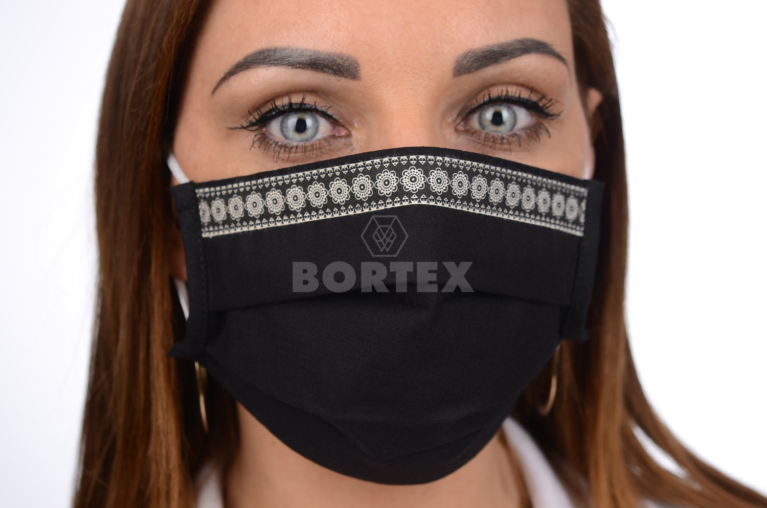 Slovenské antibakteriálne rúško s iónmi striebra B03-BORT. slovenský výrobok, dvojvrstvové-1.vrstva(100%bavlna), 2.vrstva (100%polyester s iónmi striebra) - ozdobné rúško motív kvietky (čierne) 069