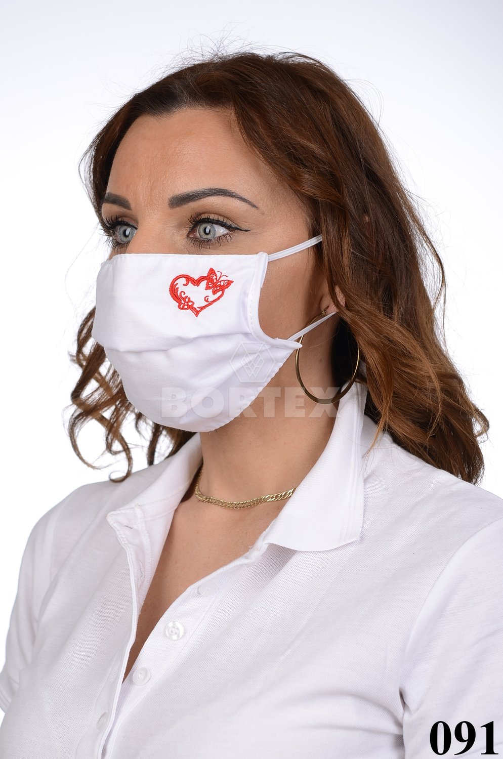 Slovenské rúško antibakteriálne s iónmi striebra B03-BORT. slovenský výrobok, dvojvrstvové-1.vrstva(100%bavlna), 2.vrstva (100%polyester s iónmi striebra) s výšivkou - srdce (červené) 091