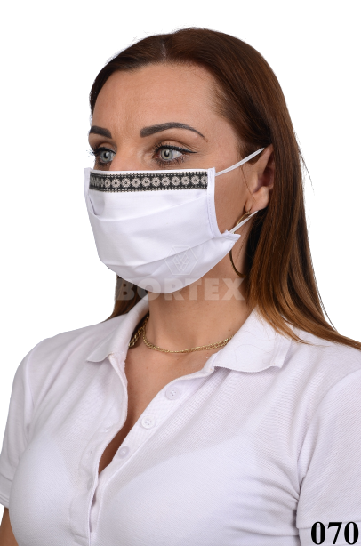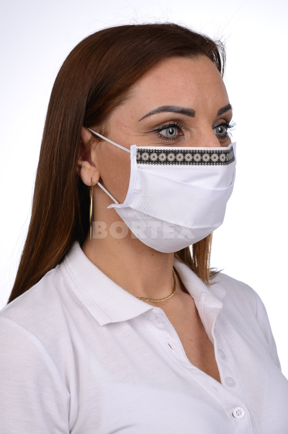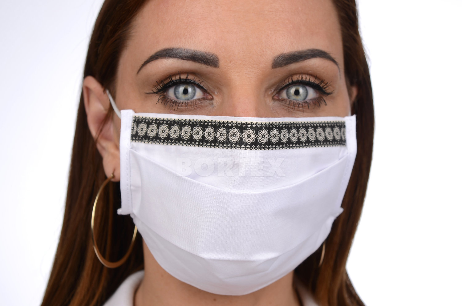 Slovenské rúško bavlnené B03-BORT.slovenský výrobok (dvojvrstvové-100% bavlna) - ozdobné rúško motív kvietky (biele) 070