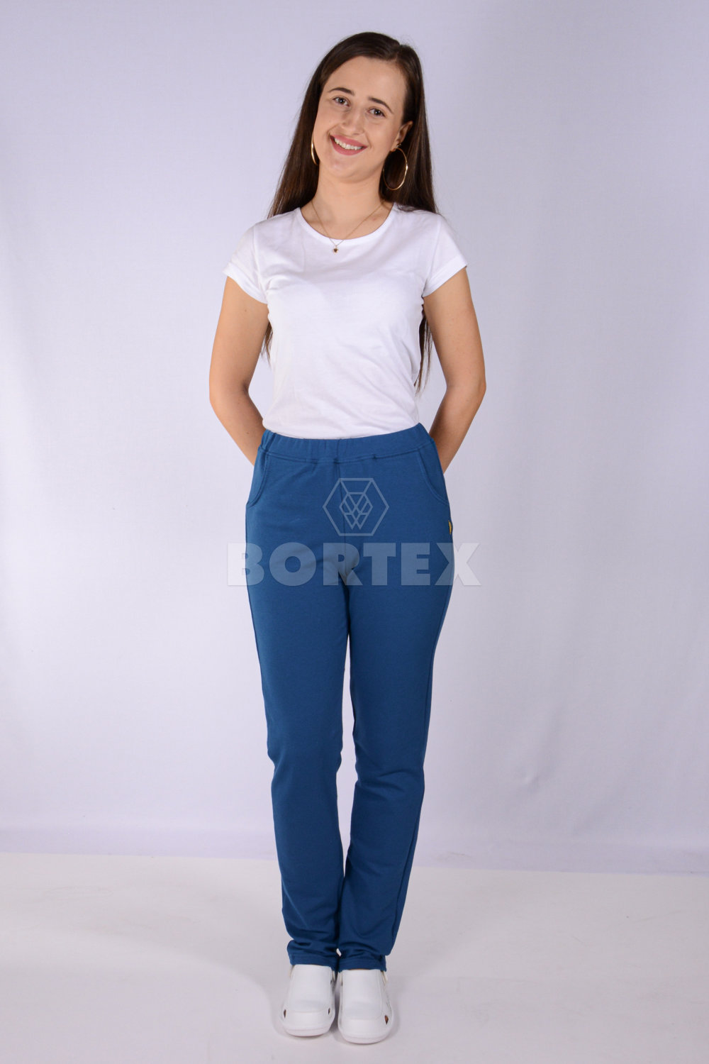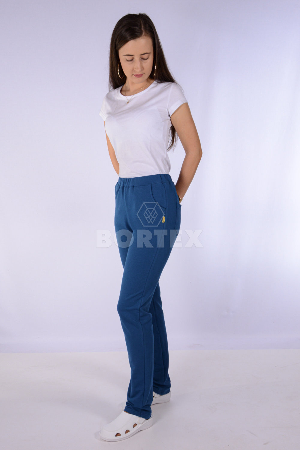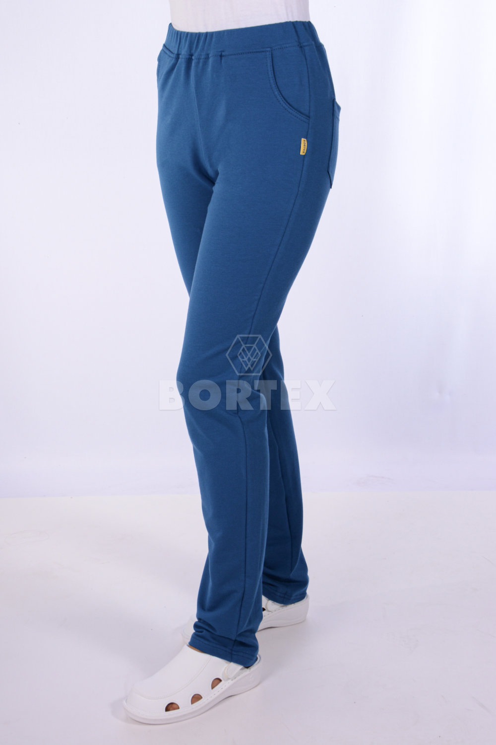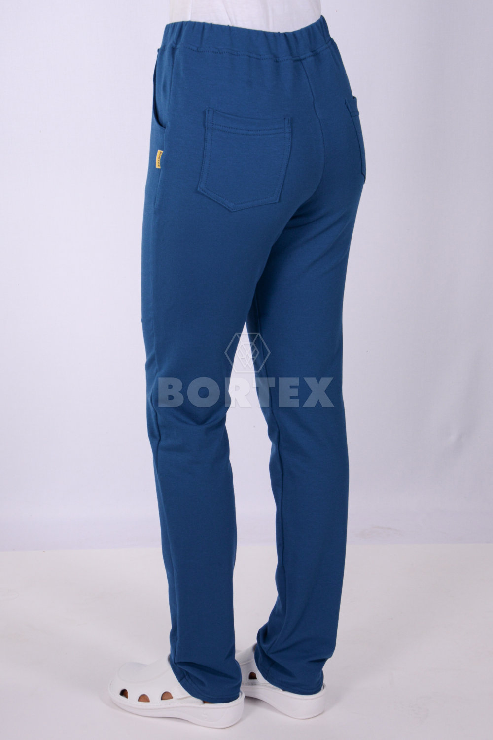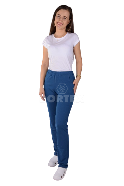 Tepláky do pása, rovného strihu, poskytujú pohodlie aj komfort. Zároveň sú pevné pri akomkoľvek odere. Tepláky sú s prinechaným páscom, predšitím so všitou gumou. Na prednej aj zadnej časti teplákov sú dve vrecká.
