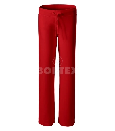 Príjemné a veľmi pohodlné dámske tepláky pre každodenné nosenie i najrôznejšie športové príležitosti. Majú pružný pás so všitou gumičkou a šnúrkou na stiahnutie. Rovný strih nohavíc je zakončený dvojitým prešívaním. Vyrobené v gramáži 300 g/m2.