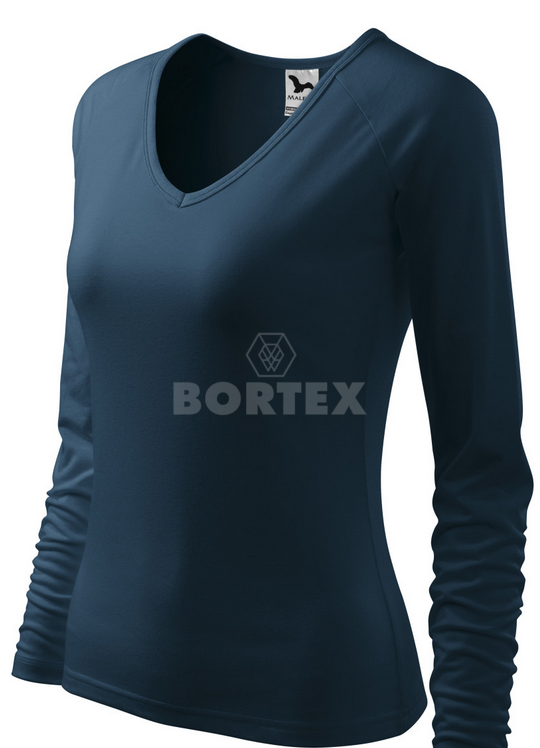Kvalitné dámske tričko vysokej gramáže, priekrčník v tvare "V", dlhý raglánový rukáv, zúžený strih zvýrazňujúci dámsku siluetu.