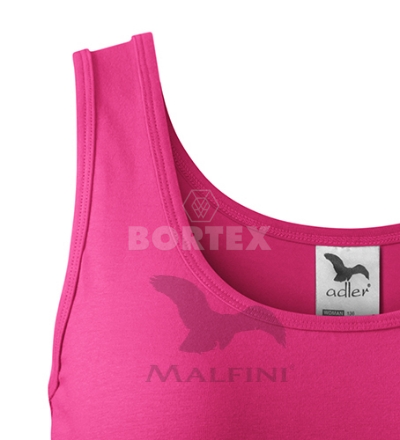 Dámske tričko s veľmi krátkym rukávom. Tričko má voľný okrúhly priekrčník s úzkym lemom. Ramená sú spevnené všitým prúžkom. Tričko má dĺžku od hĺbky bokov.  Zľahka vypasovaný strih s bočnými švami zvýrazňuje dámsku siluetu. Silikónové zmäkčovadlo zaisťuje splývavosť a mäkkosť na dotyk, vhodné na potlač a výšivku.