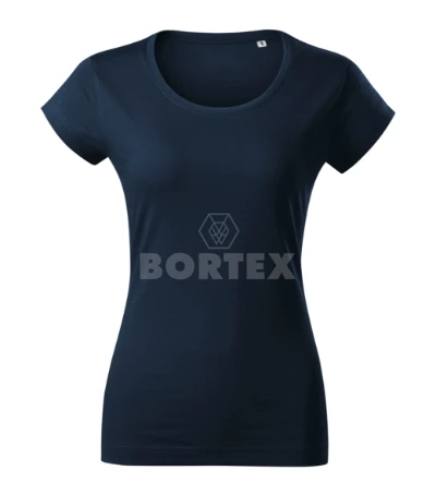 Dámske tričko s jemne vypasovaným strihom. Pripravené na rebranding, hrubší guľatý výstrih, úzky lem priekrčníka z povrchového materiálu s 5% elastanu. Neutrálny veľkostný štítok v bočnej časti priekrčníku, vnútorná časť priekrčníka začistená páskou z povrchového materiálu, spevnenie ramenných švov páskou, rukávy kratšej dĺžky, silikónová úprava.
