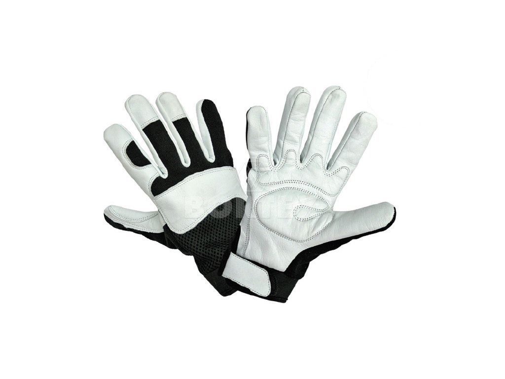 Ochranné pracovné rukavice, dlaň z jemnej triedenej jahňaciny, polstrovaná, rub z materiálu TEBOX, zapínanie VELCRO.