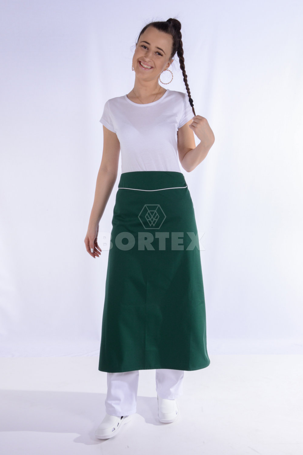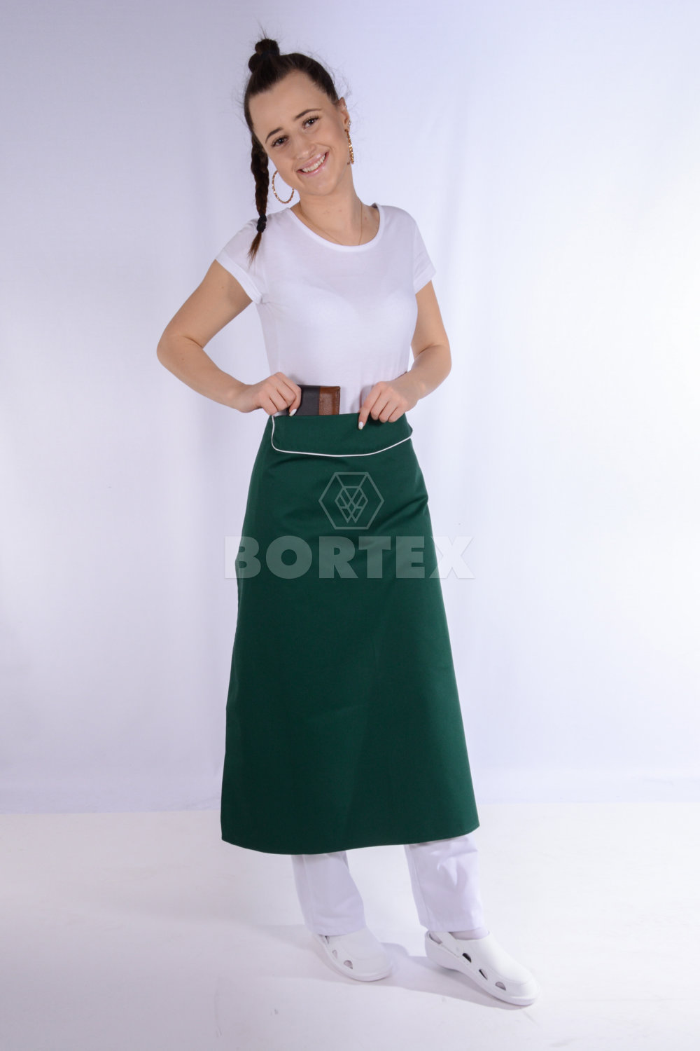 Zástera do pása s vreckom je pohodlná na nosenie a bráni ušpineniu vášho oblečenia. Zástera je vyrobená z kvalitného na dotyk príjemného materiálu - zmesový materiál (65% polyester, 35% bavlna) v gramáži 245 g/m2.