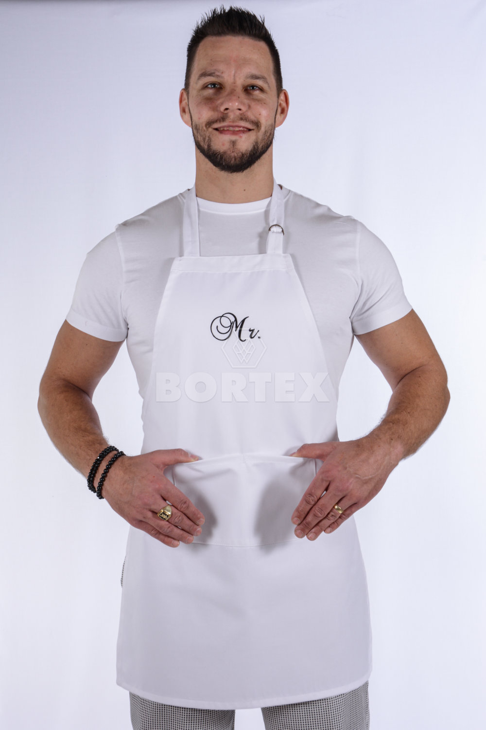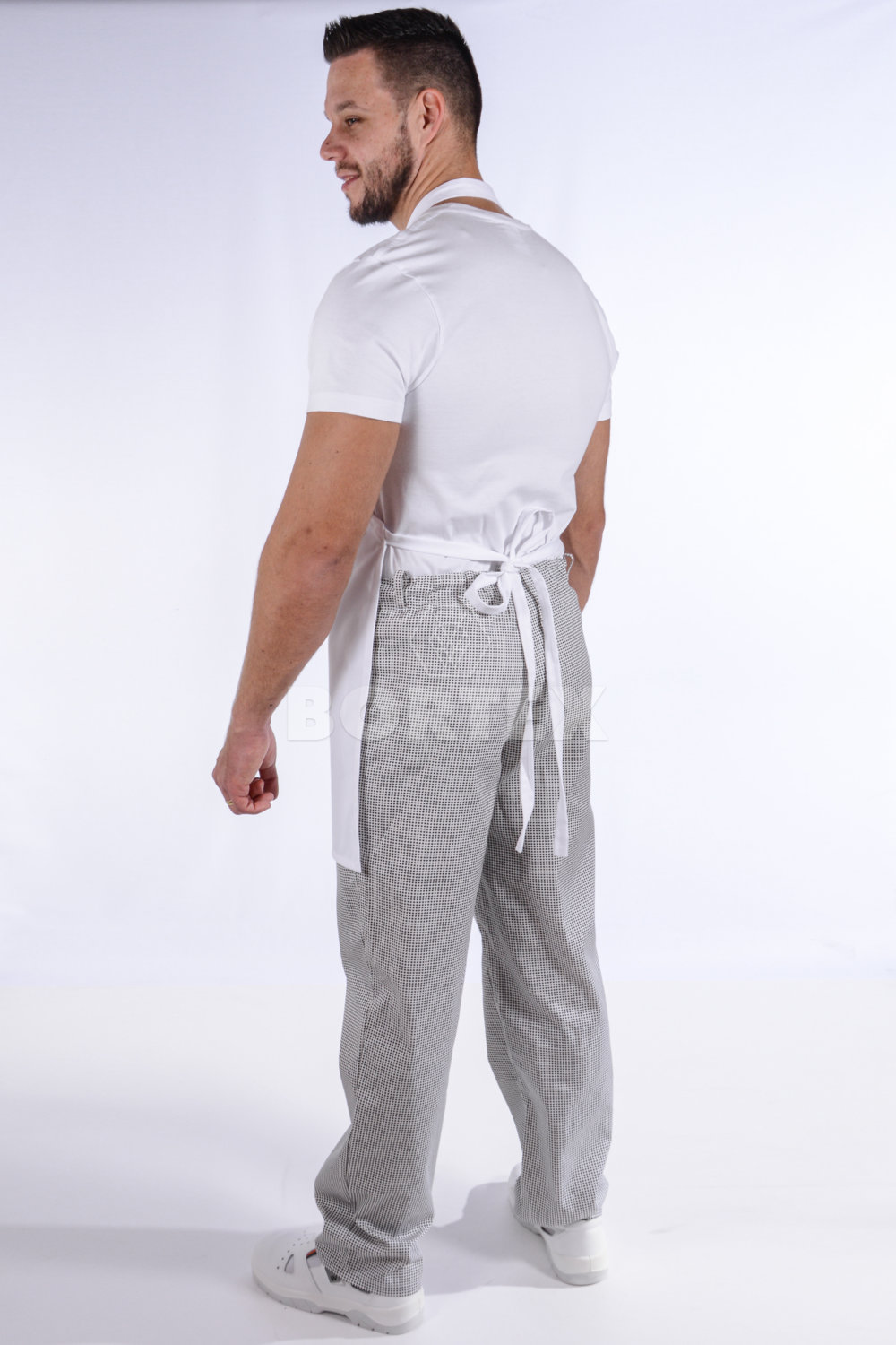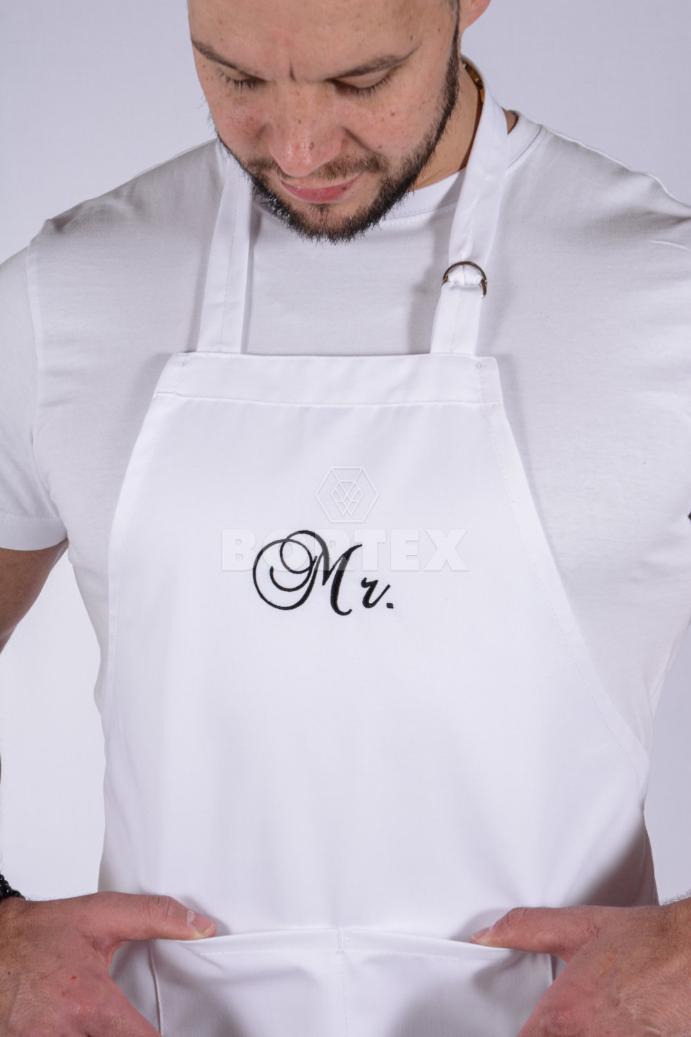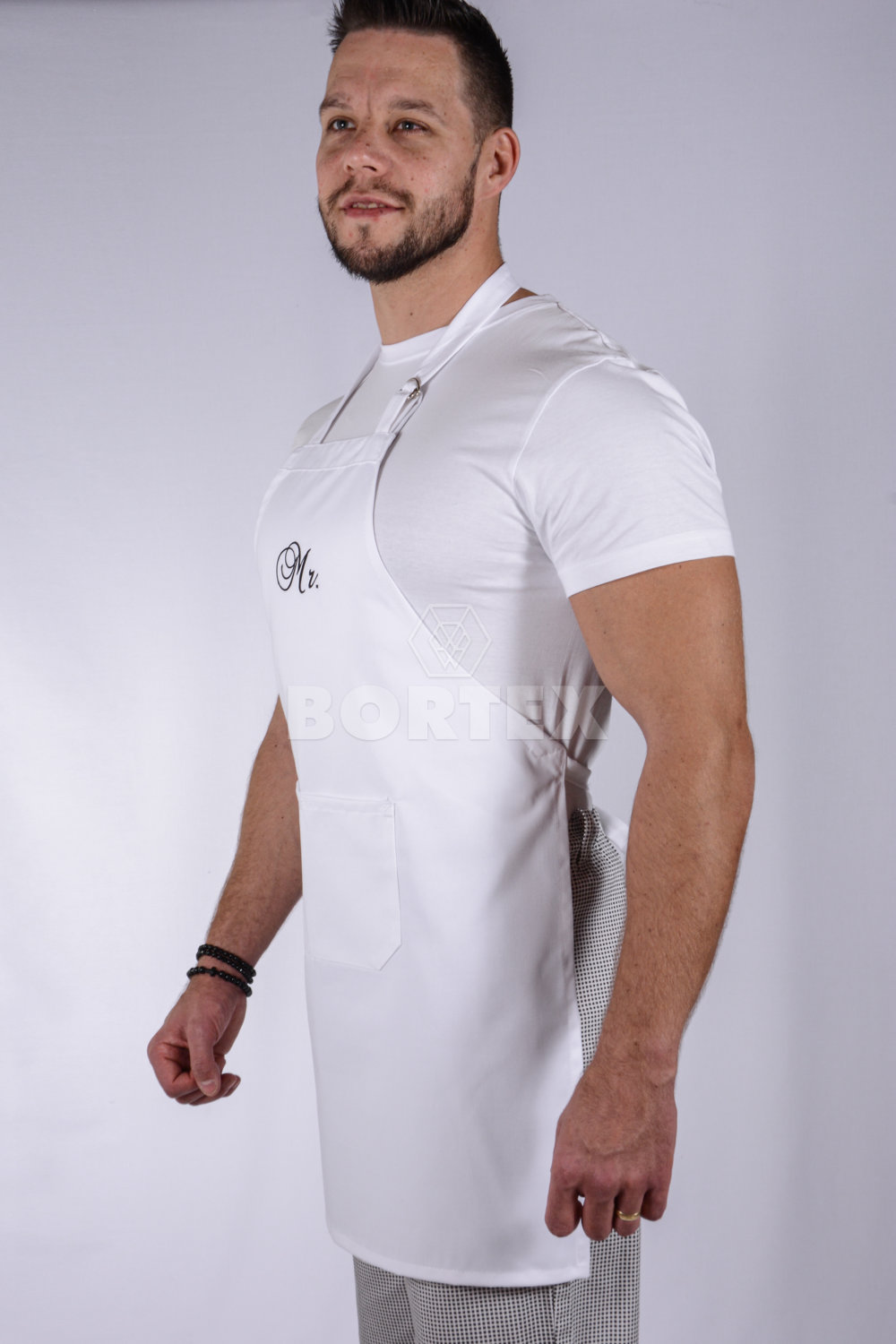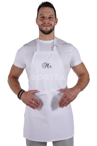 Pracovná zástera má okolo krku nastaviteľnú pracku, na nastavenie dĺžky. V zadnej časti sa sťahuje šnúrkami. Je možné ju zaviazať aj  z prednej časti, zboku. Súčasťou zástery je veľké a praktické vrecko. Na náprsenke sa nachádza výšivka, ktorá dodáva zástere pekný vzhľad.
