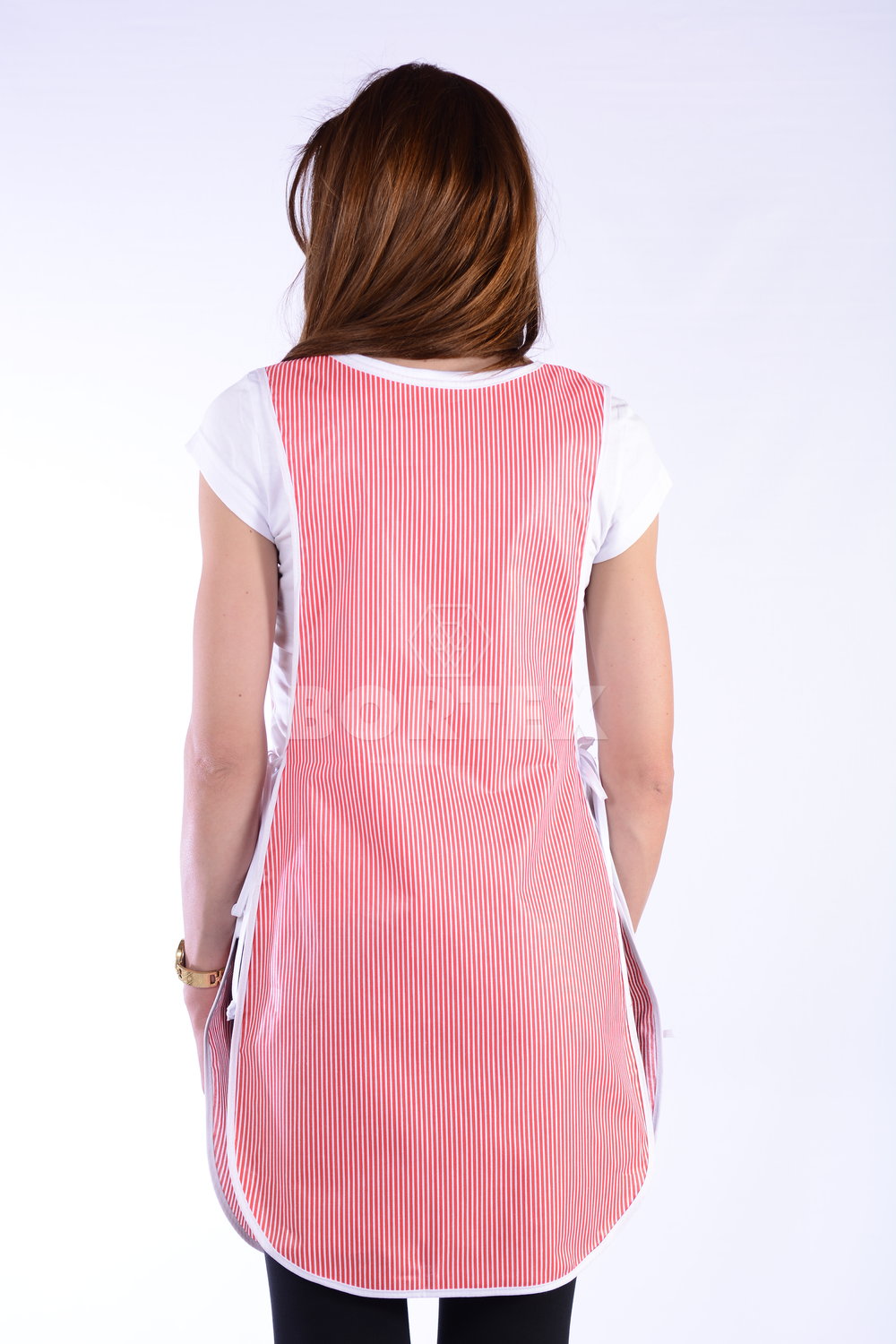Pracovná zástera je motylikového strihu s okrúhlym výstrihom a je olemovaná. Skladá sa z predného a zadného dielu, oblieka sa cez hlavu a uväzuje sa na páse po bokoch na šnúrky. Súčasťou predného dielu je aj praktické vrecko.