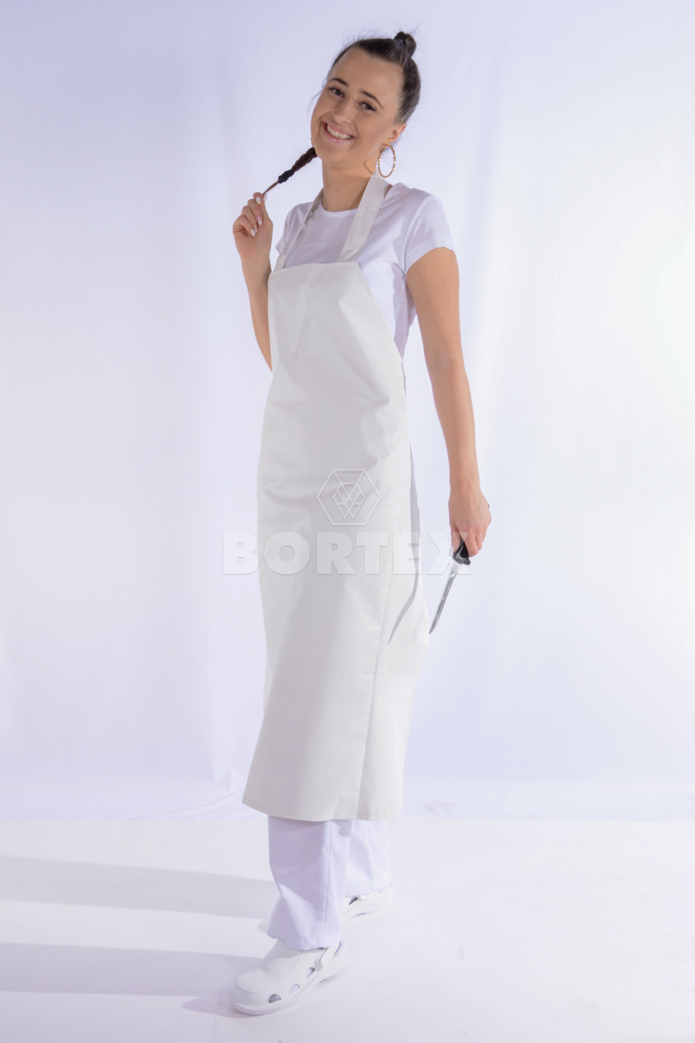 Pracovná zástera sa v zadnej časti sťahuje šnúrkami. Vyniká kvalitným pogumovaným materiálom, ktorý má dlhú životnosť, je odolná voči vode a navyše sa jednoducho čistí.