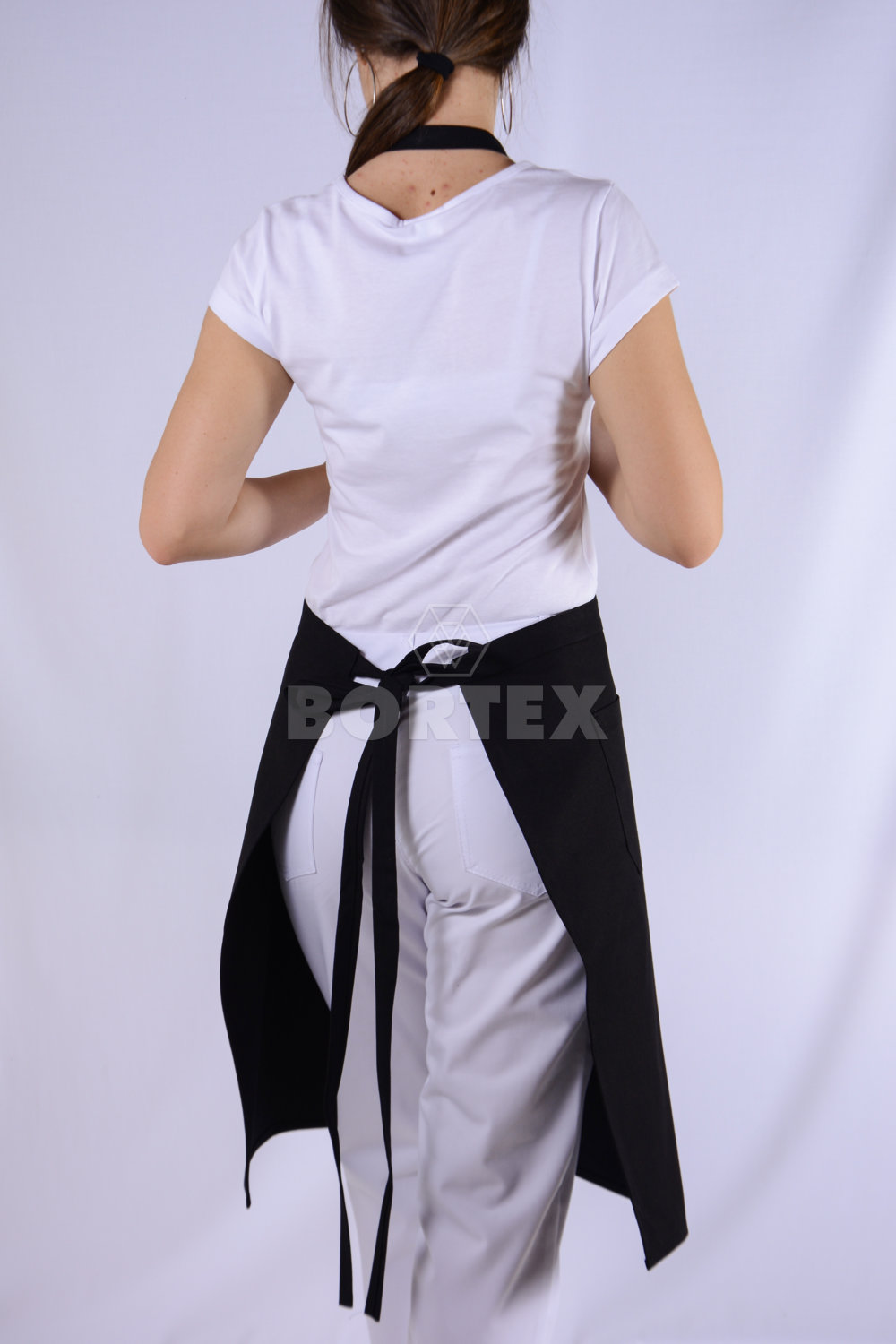 Zástera sa v zadnej časti sťahuje šnúrkami. Je možné zaviazať si ju aj z prednej časti, zboku. Súčasťou zástery je aj bočné a praktické vrecko. Náprsenka zabraňuje znečisteniu odevu a zároveň chráni telo.