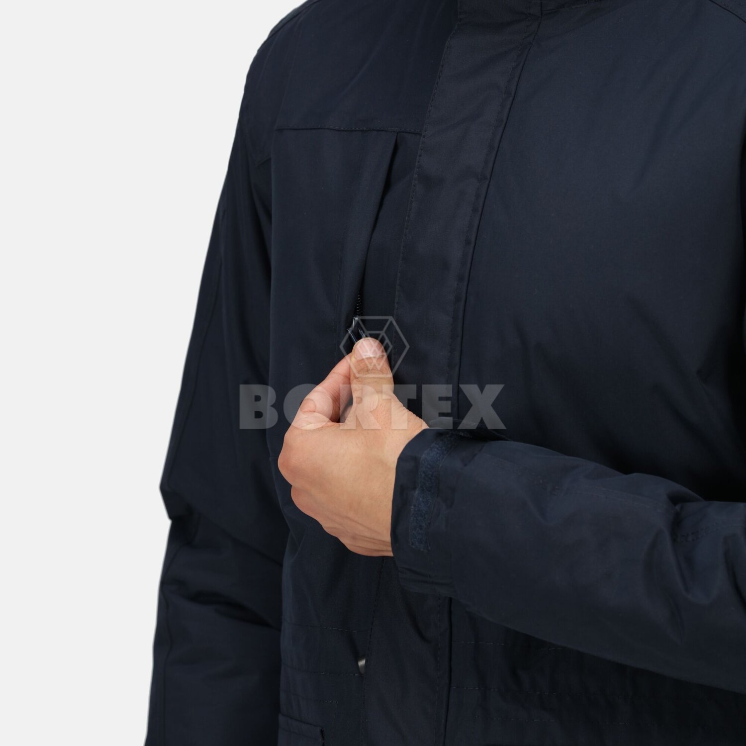 Zateplená nepremokavá bunda s kapucňou v golieri a  s podlepenými švami, pre pohodlné nosenie aj v chladnejšom počasí.